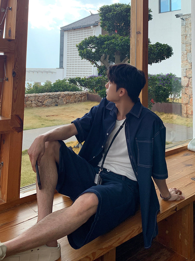 Denim Straight-leg Shorts
