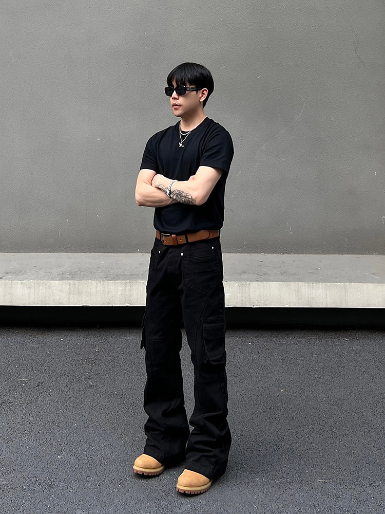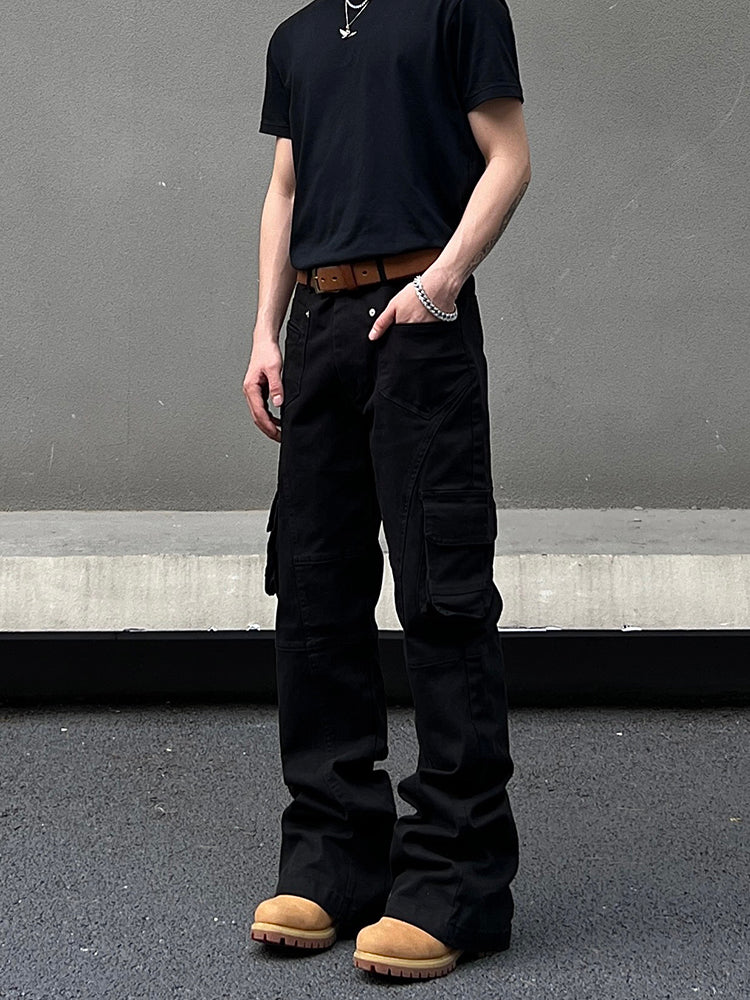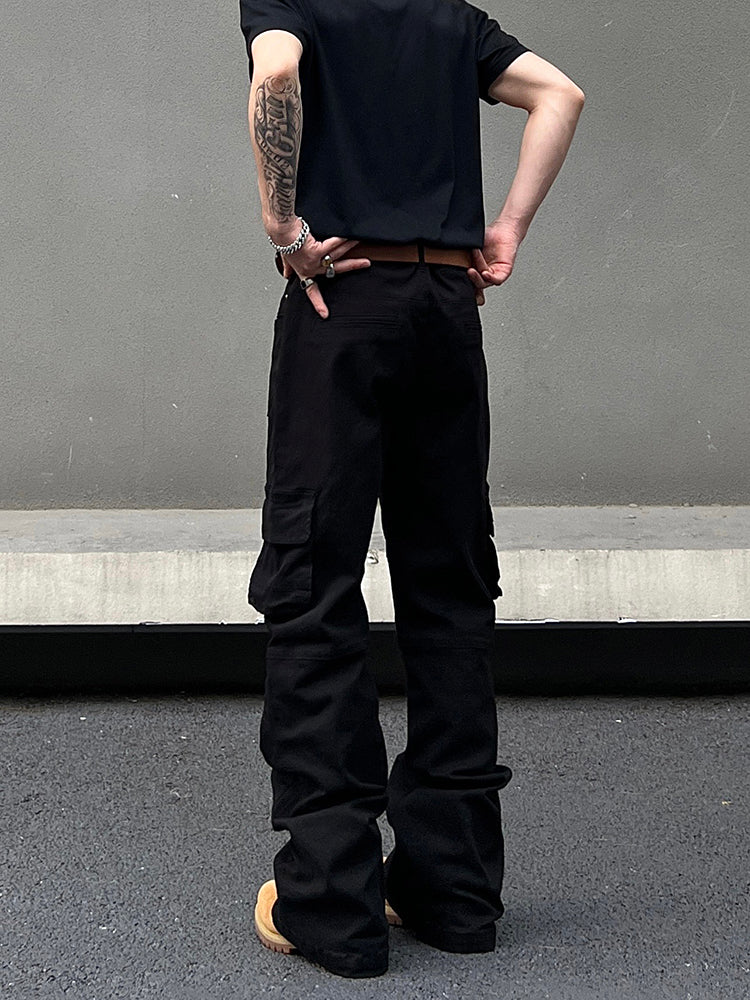 Multi-Pocket Flared Cargo Pants