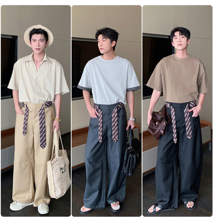 Wide-Leg Casual Drape Pants