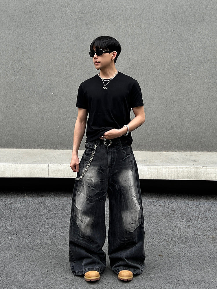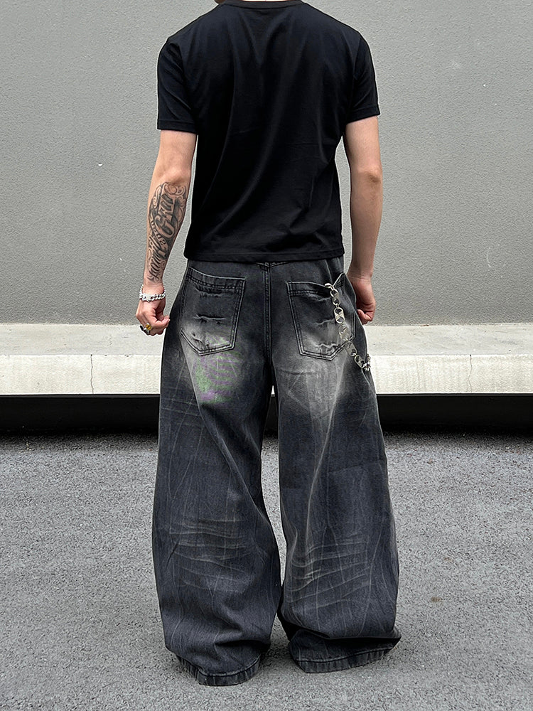 Wide-Leg Lightning Pattern Jeans