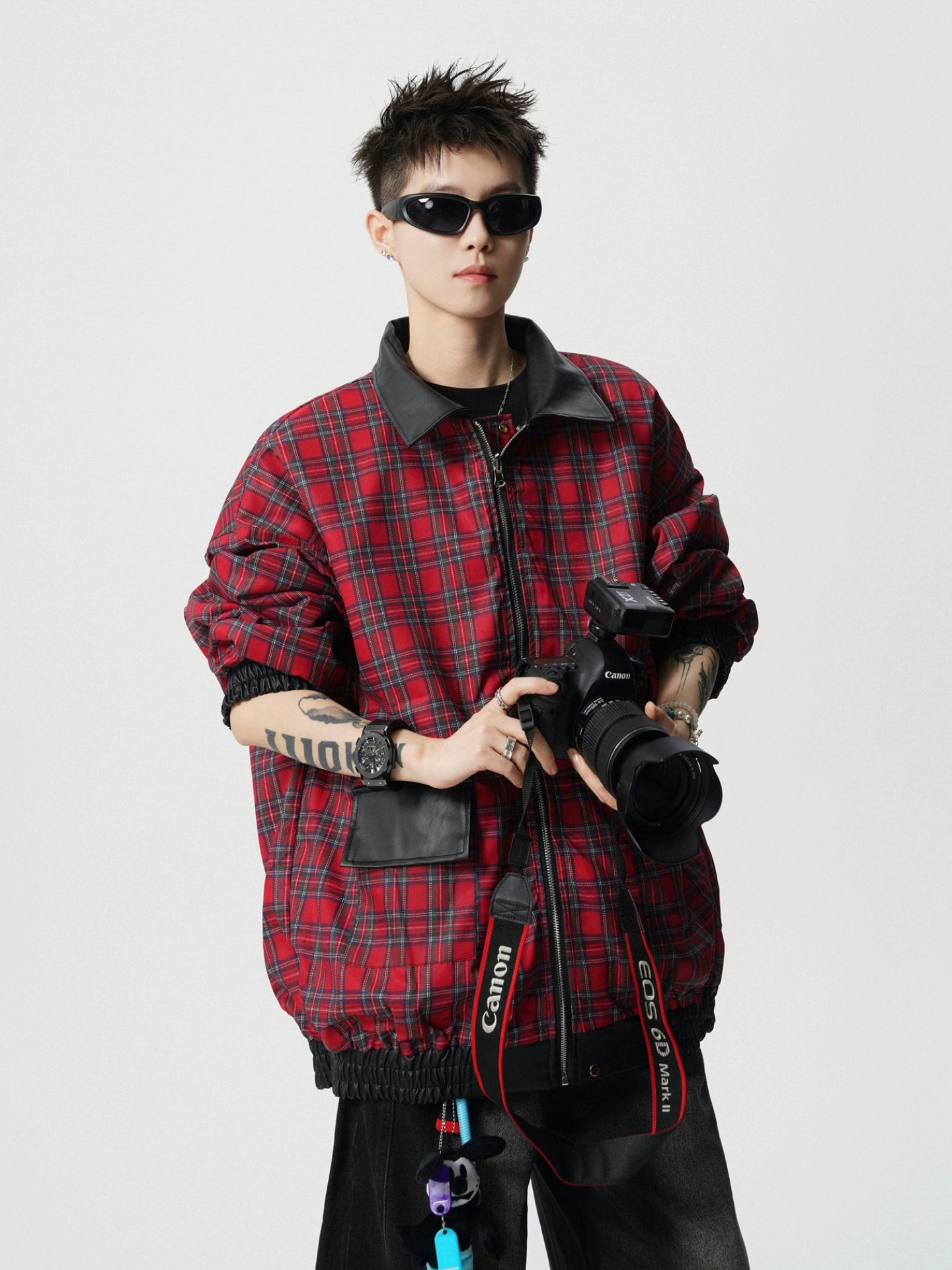 Обратная куртка из искусственной кожи с подкладкой в клетку