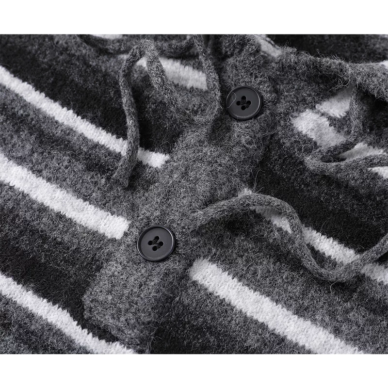 Striped Loose-Fit Hooded Knit Sweatshirt