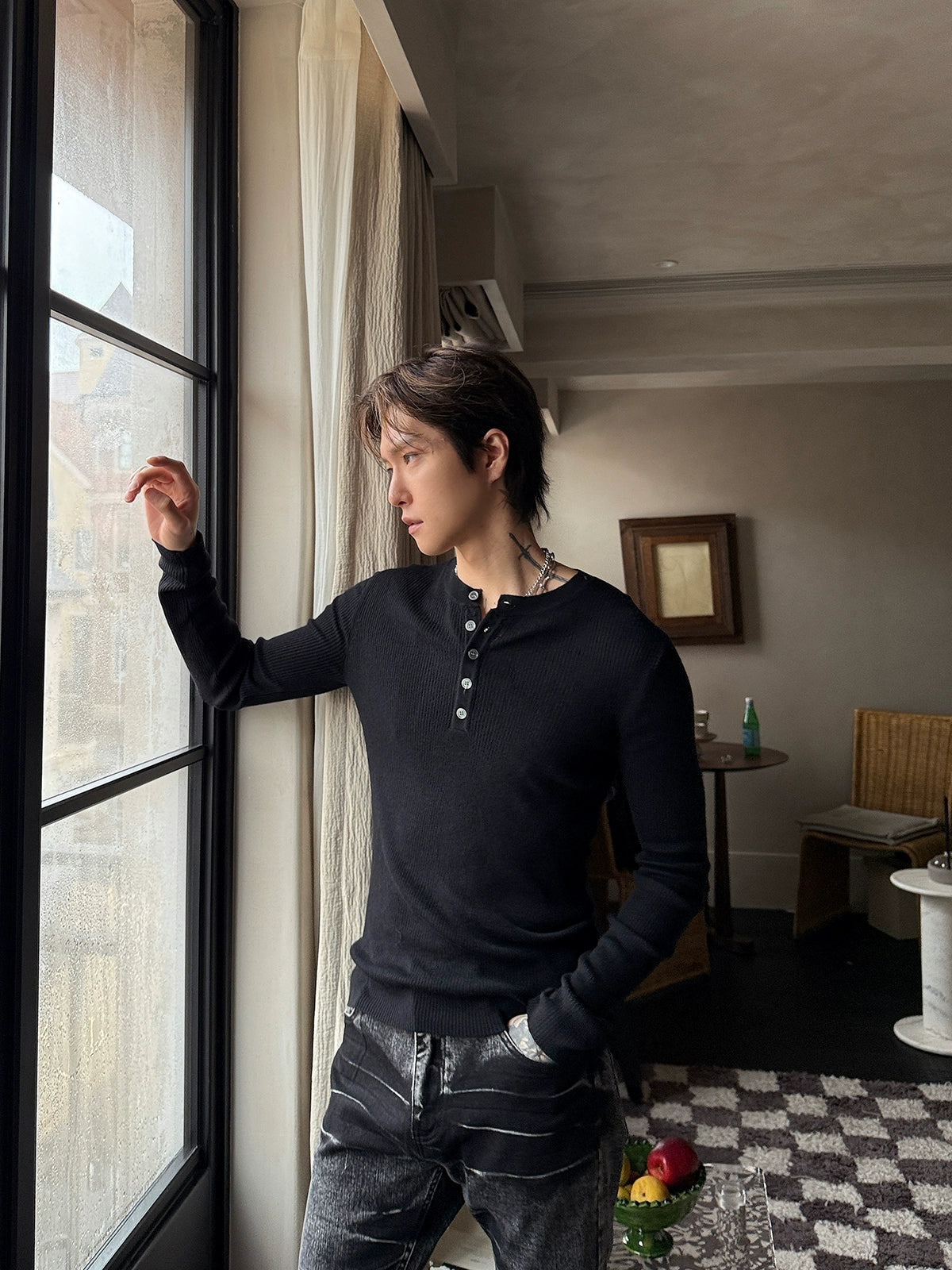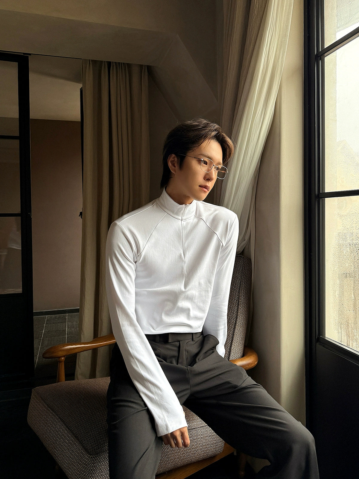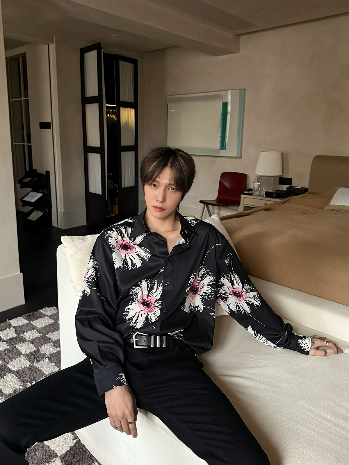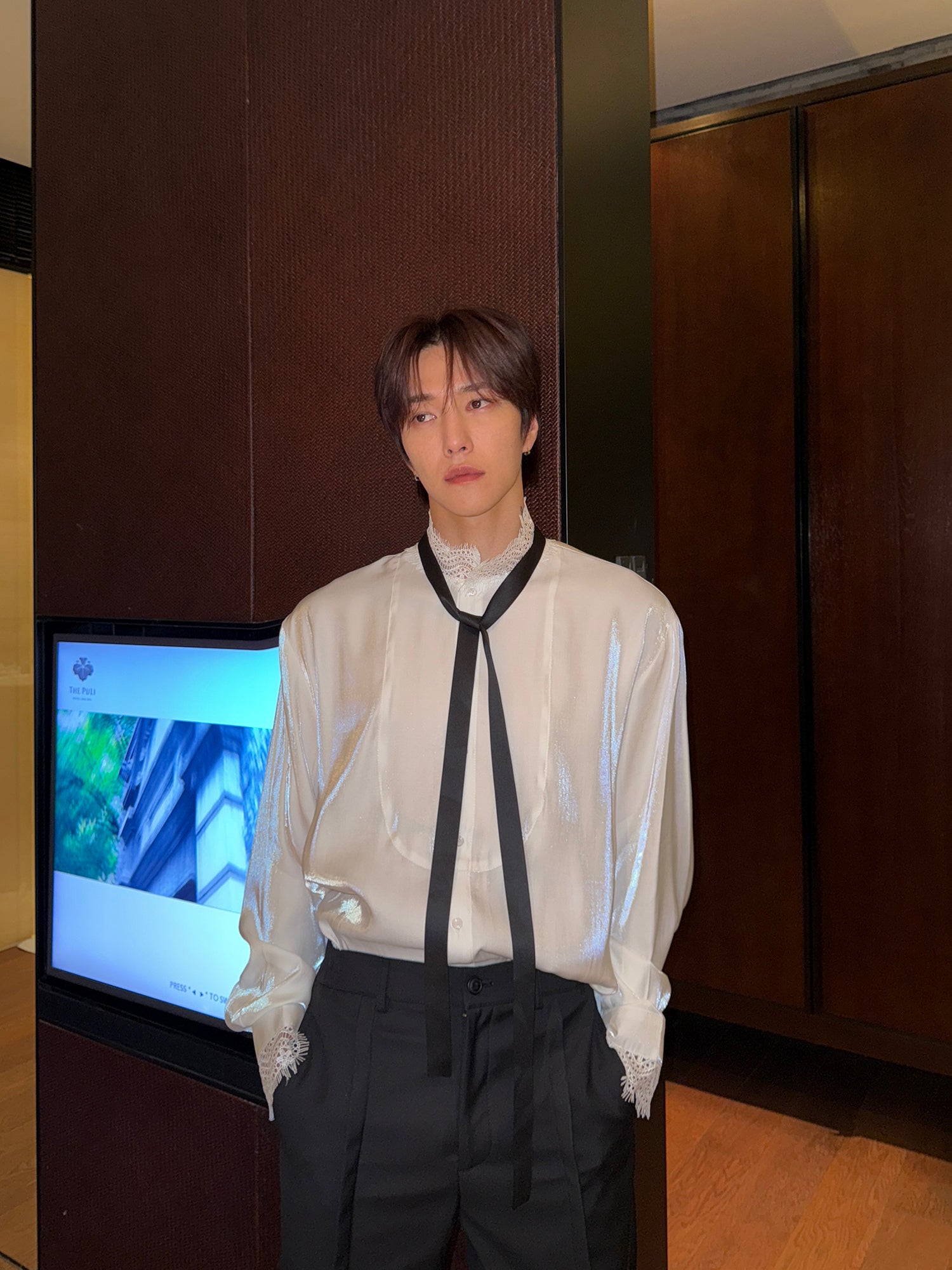 Lace Splicing Stand Collar Long Sleeve Shirt