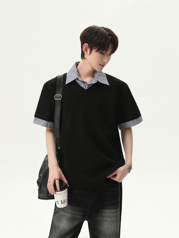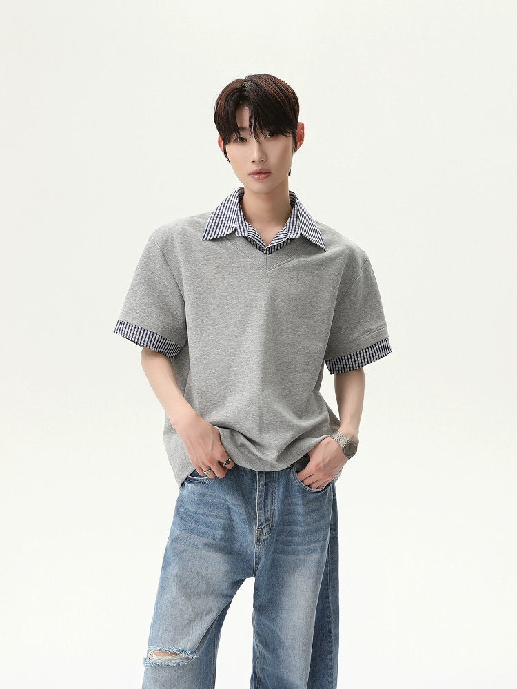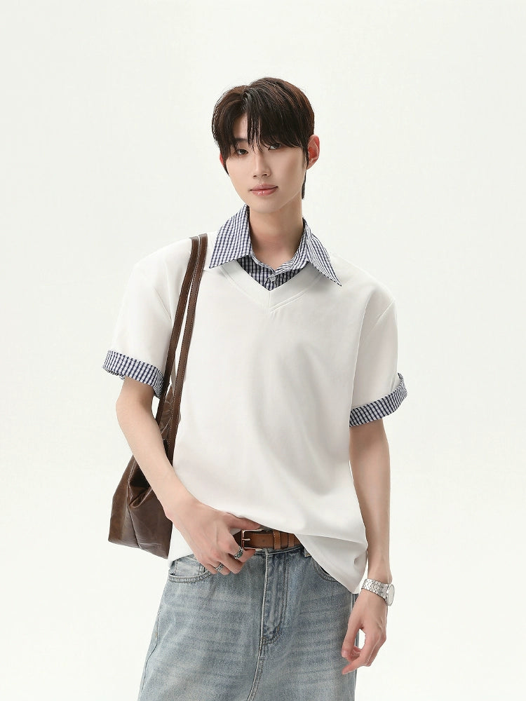 Plaid Collar Short Sleeve Pullover