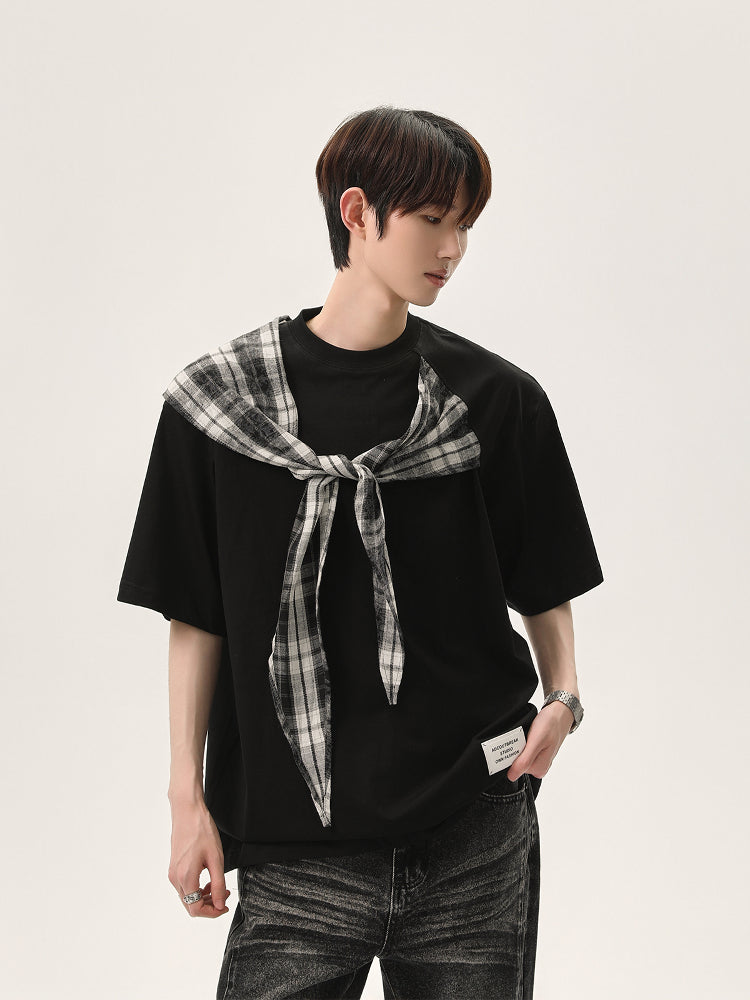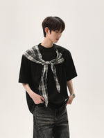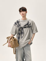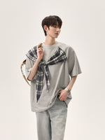 Plaid Shawl Short-Sleeve Pullover