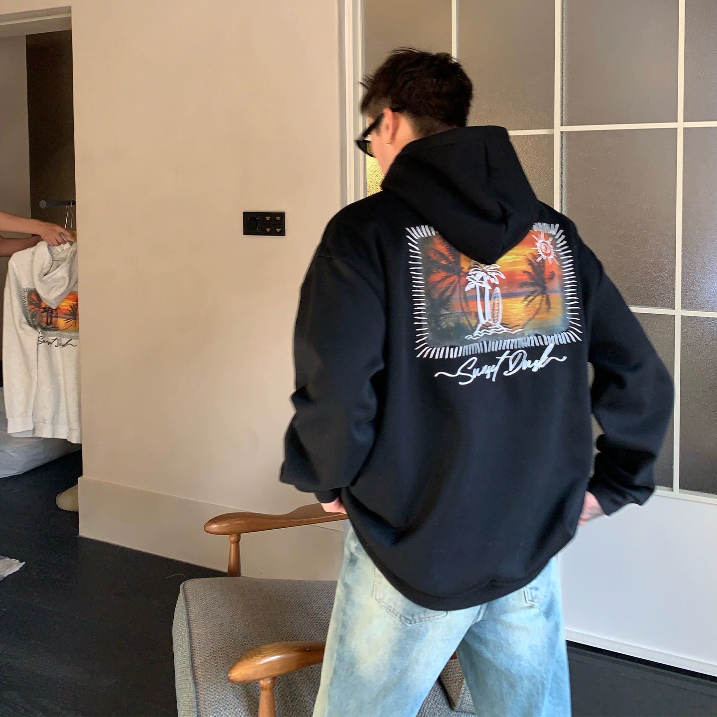 Seaside Sunset Print Hooded Sweatshirt
