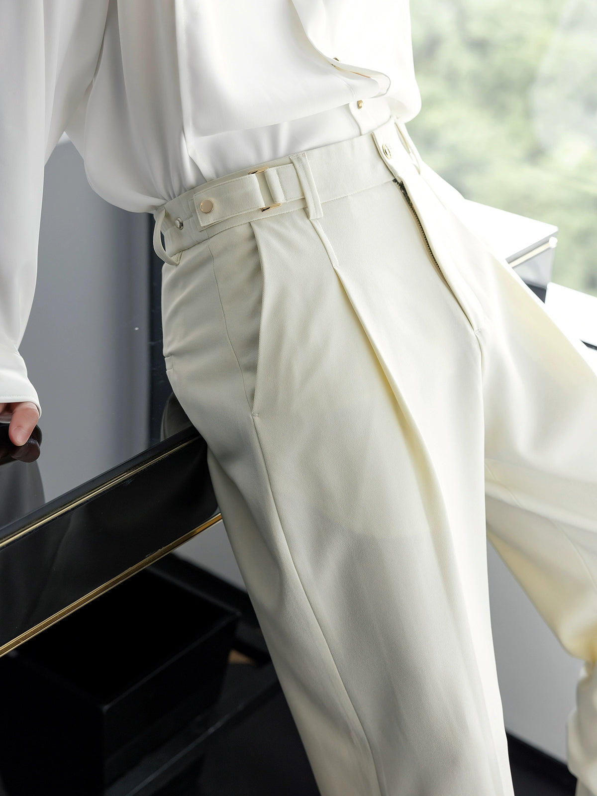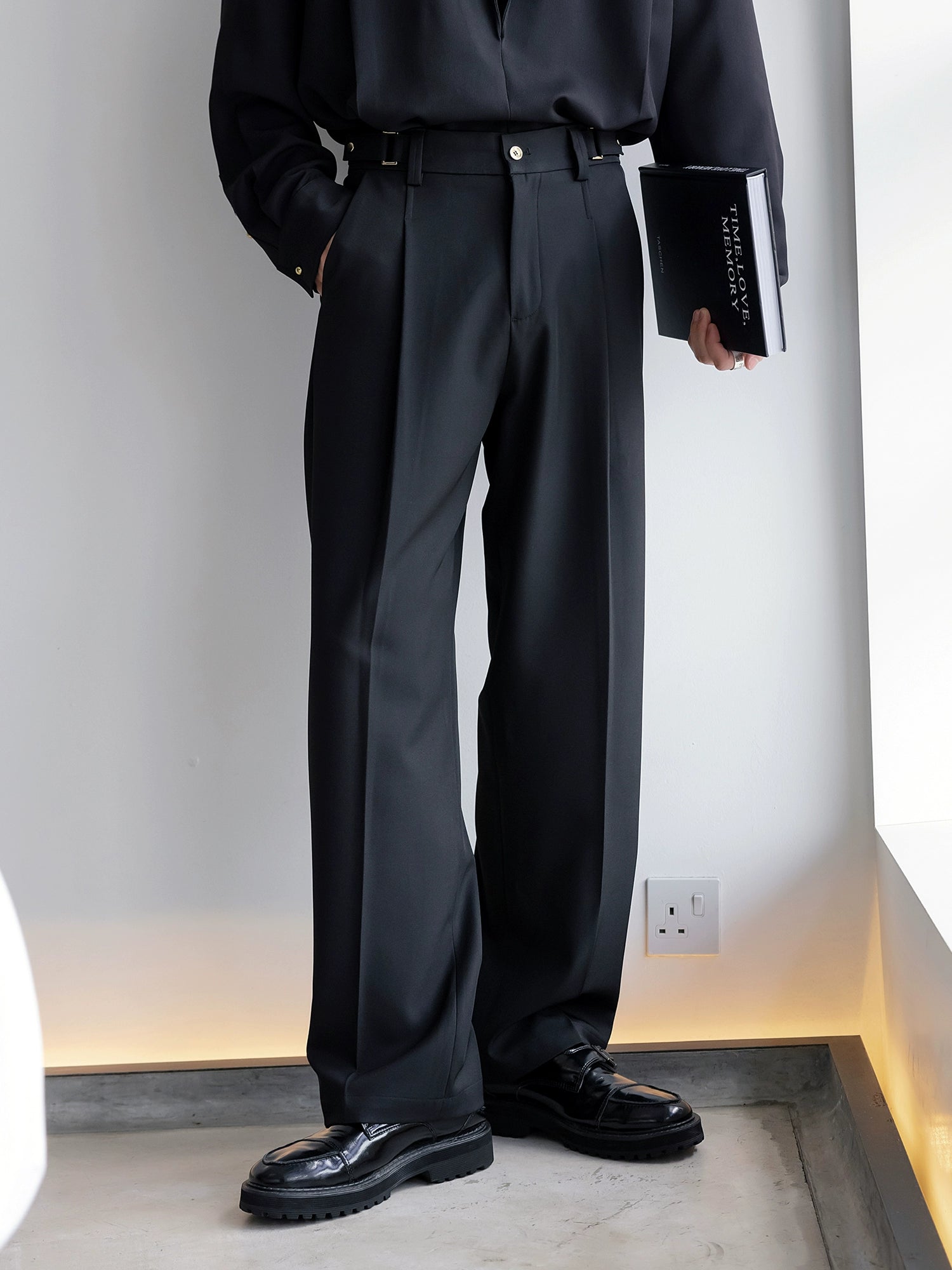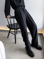 Alloy Buckle Straight Loose Wide-Leg Pants