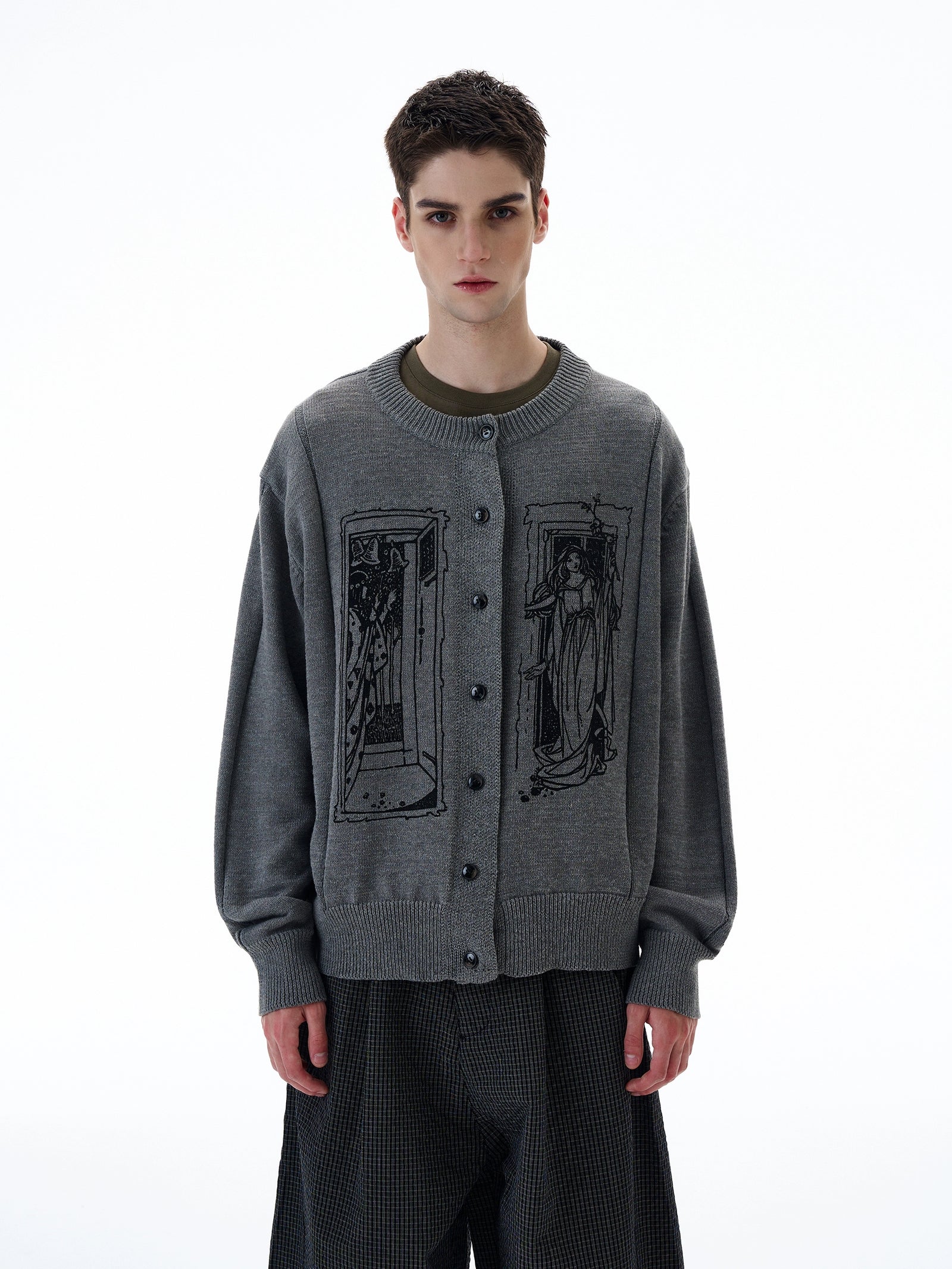 Printed Knit Button Cardigan