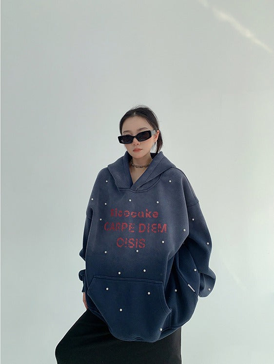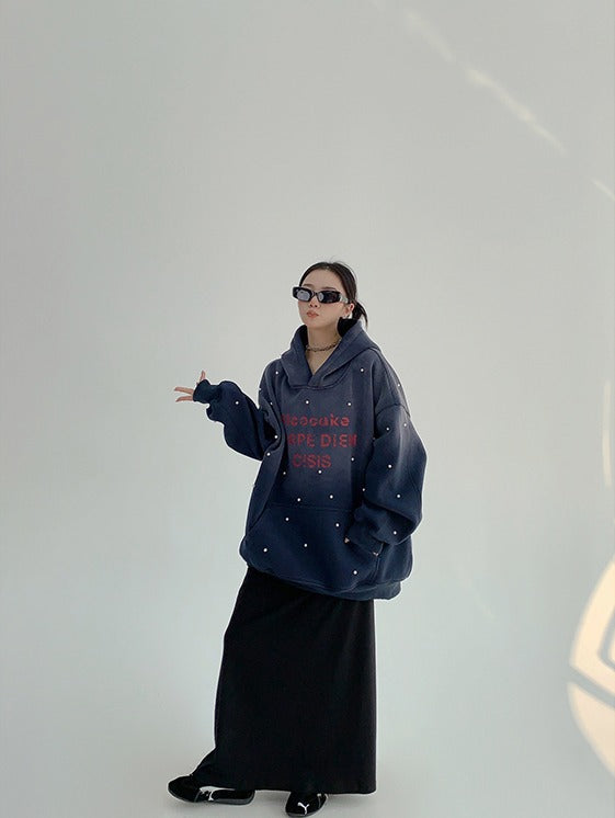 - Bokstäver är flocktryckta med ett oregelbundet nagelpärldesign