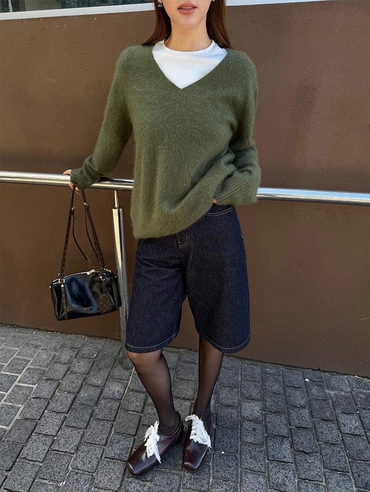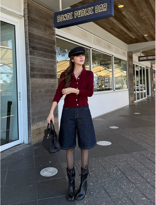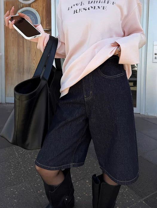 - Högmidjade mid-längd denimshorts, klassisk och enkel stil, lös och generös passform, mångsidig och hållbar för dagligt bruk.