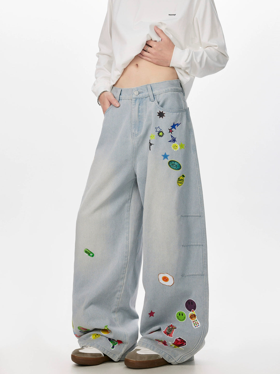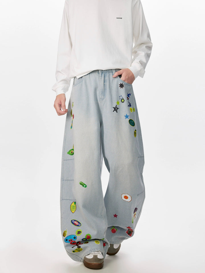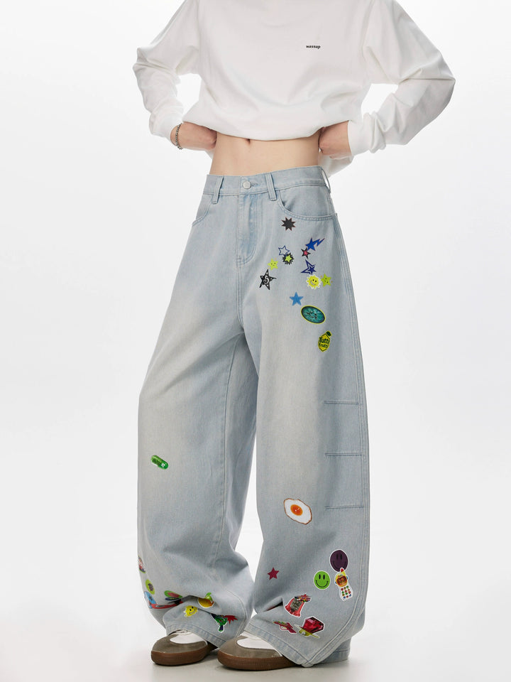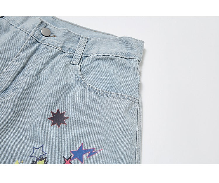 - Stil: Klistermärke tryckta denimbyxor