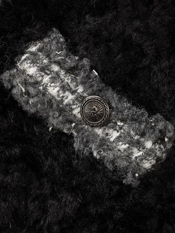 Sahte Kürk Tweed Kenar Kış Ceket