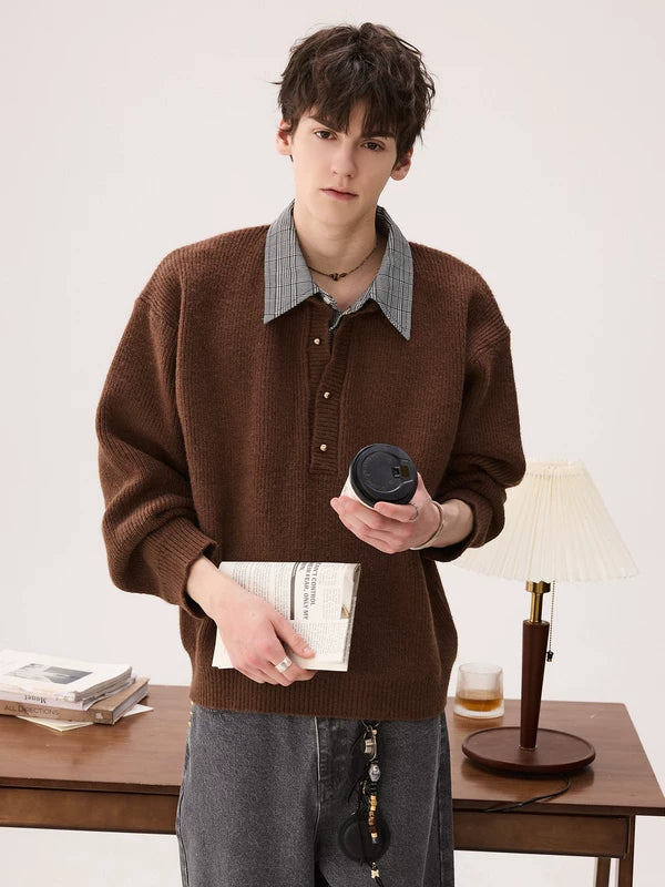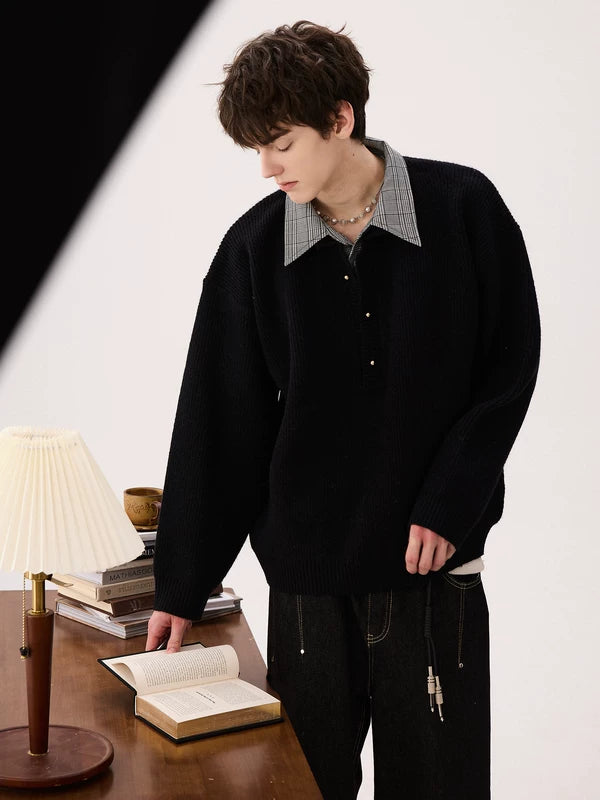 Köpek dişi Yaka Sahte İki Parça Kazak