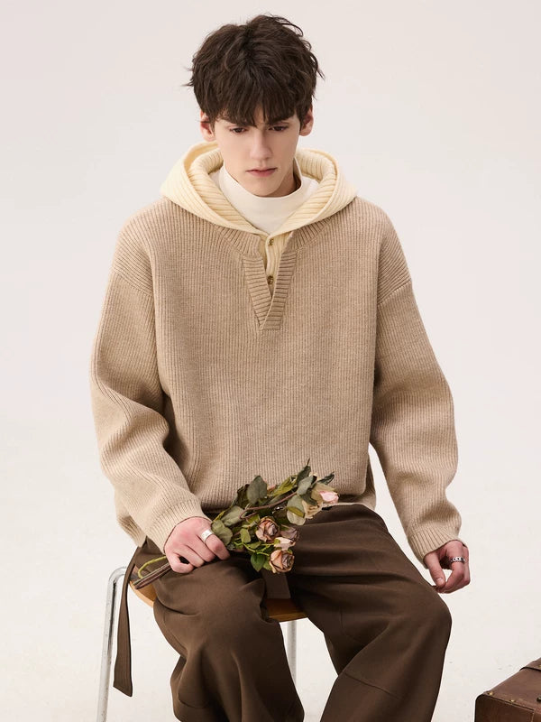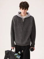 Kalın Polar Sahte Katmanlı Kapüşonlu Kazak