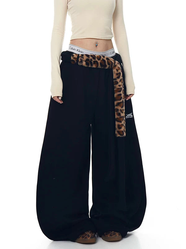 Leopar Kemer Polar Geniş Paça Eşofman Altı