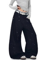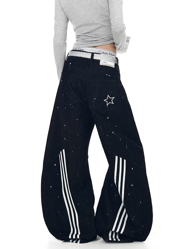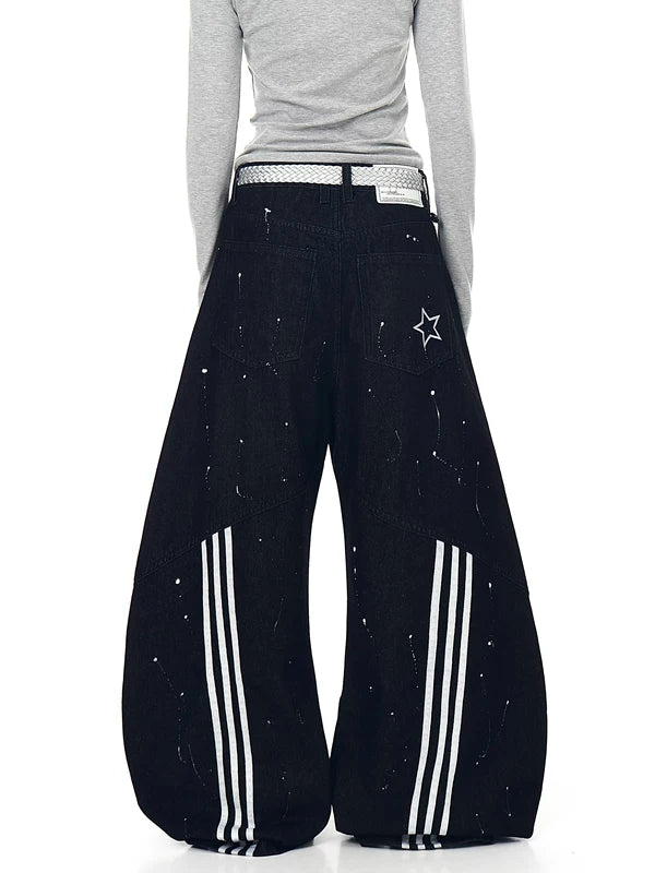 Deconstructed Geniş Paça Çizgili Boya Sıçrama Pantolonları