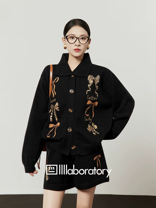 Leopar Kemerli Örgü Kazak ve Şort Takımı