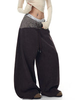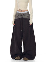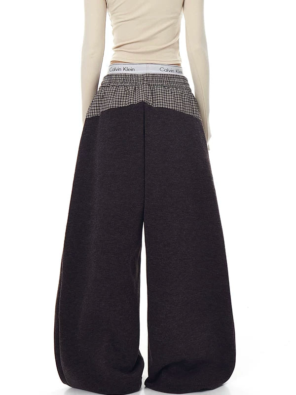 Ekose Yamalı Geniş Paça İpli Eşofman Pantolonu