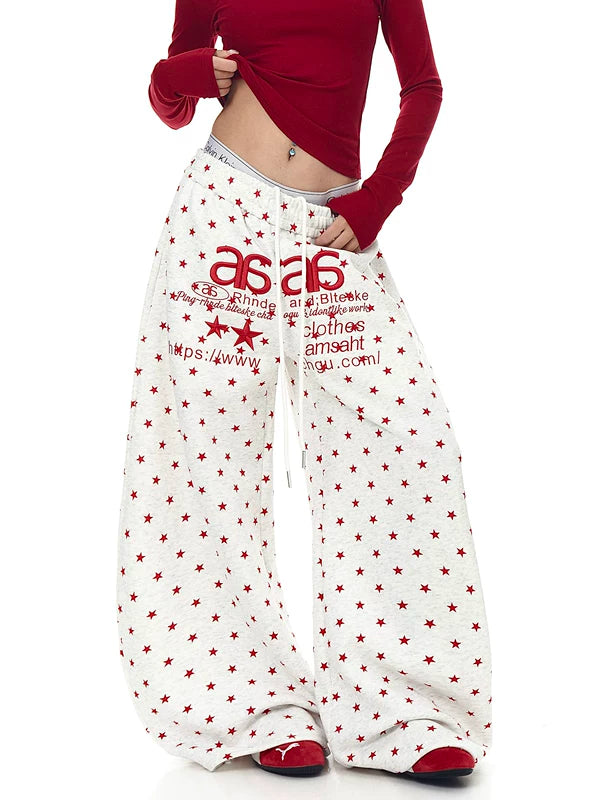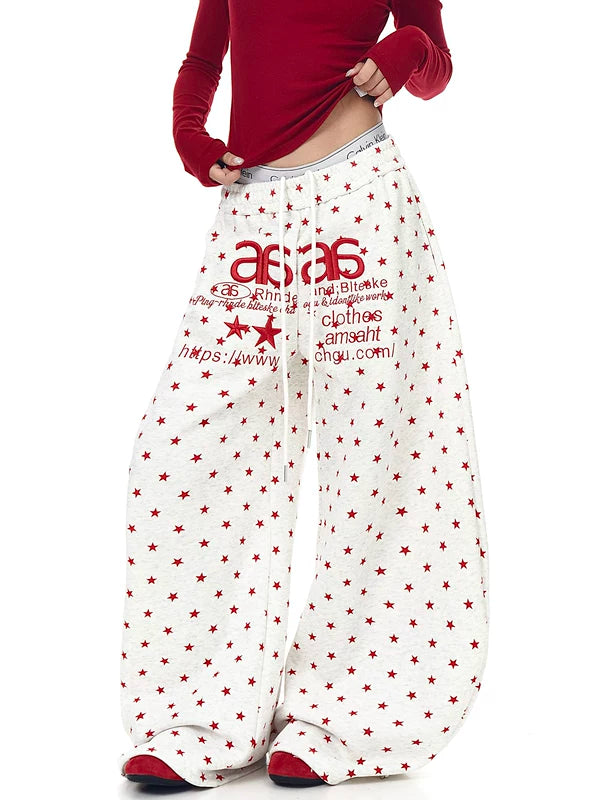 Yıldız Desenli Geniş Paça Sokak Modası Pantolon