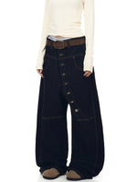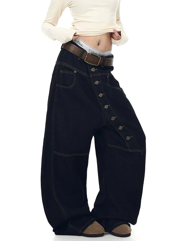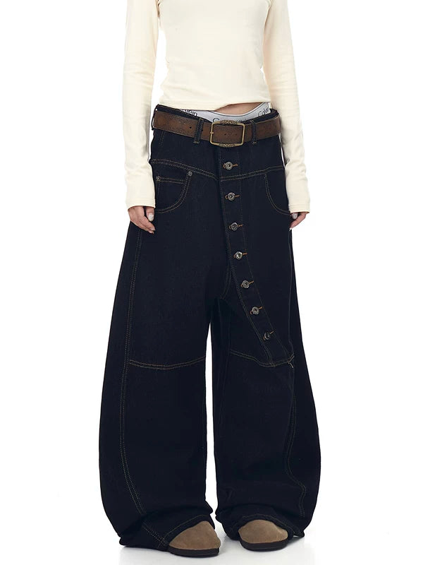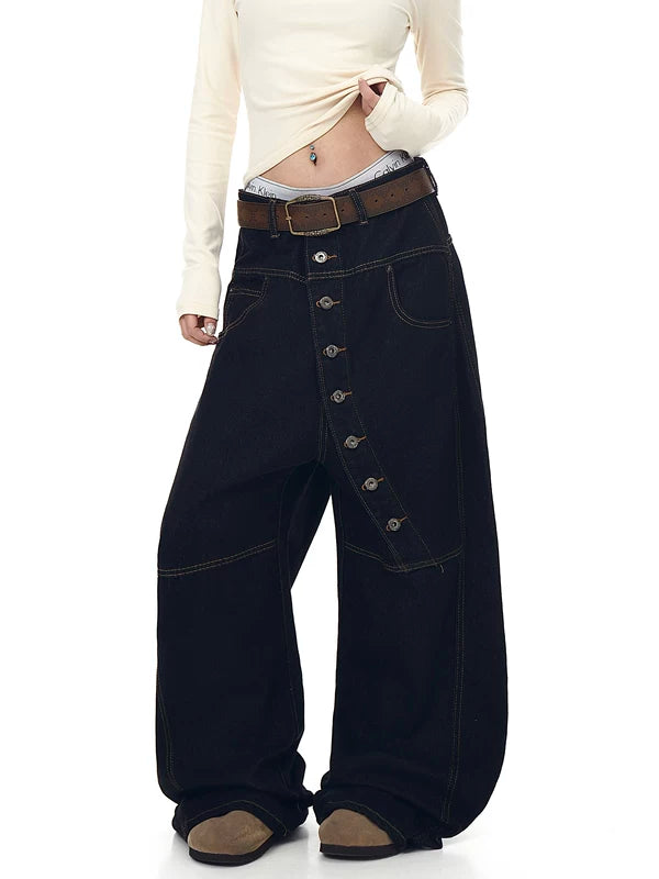 Geniş Paça Deconstructed Düğmeli Ön Denim Pantolon