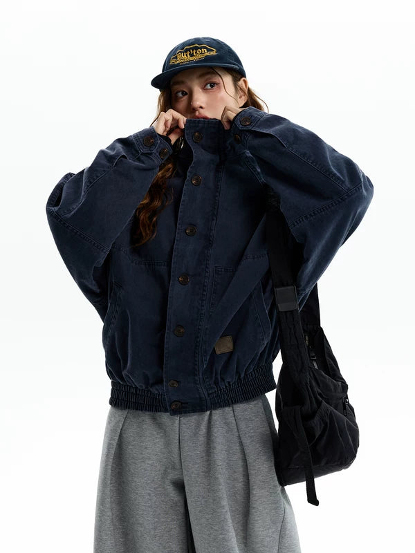 Kısa Geniş Omuz Retro Çalışma Ceketi