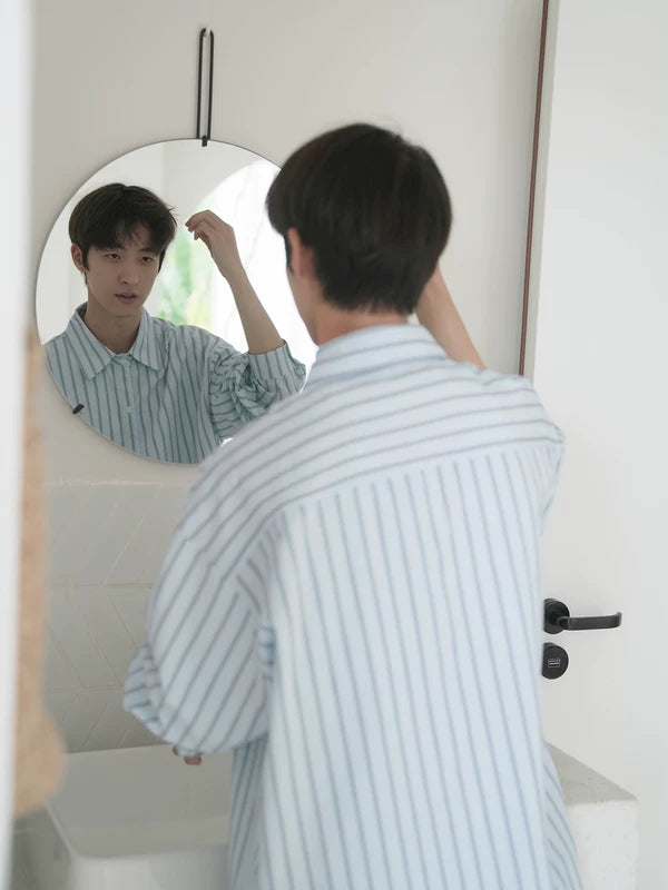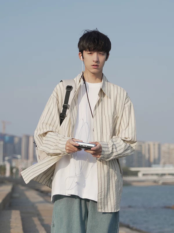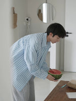 Uzun Kollu Çizgili Seersucker Düğmeli Gömlek
