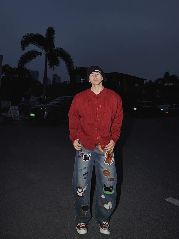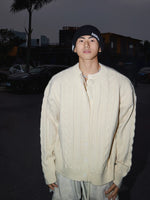 Retro Kablo Örgü Düğmeli Ön Süveter
