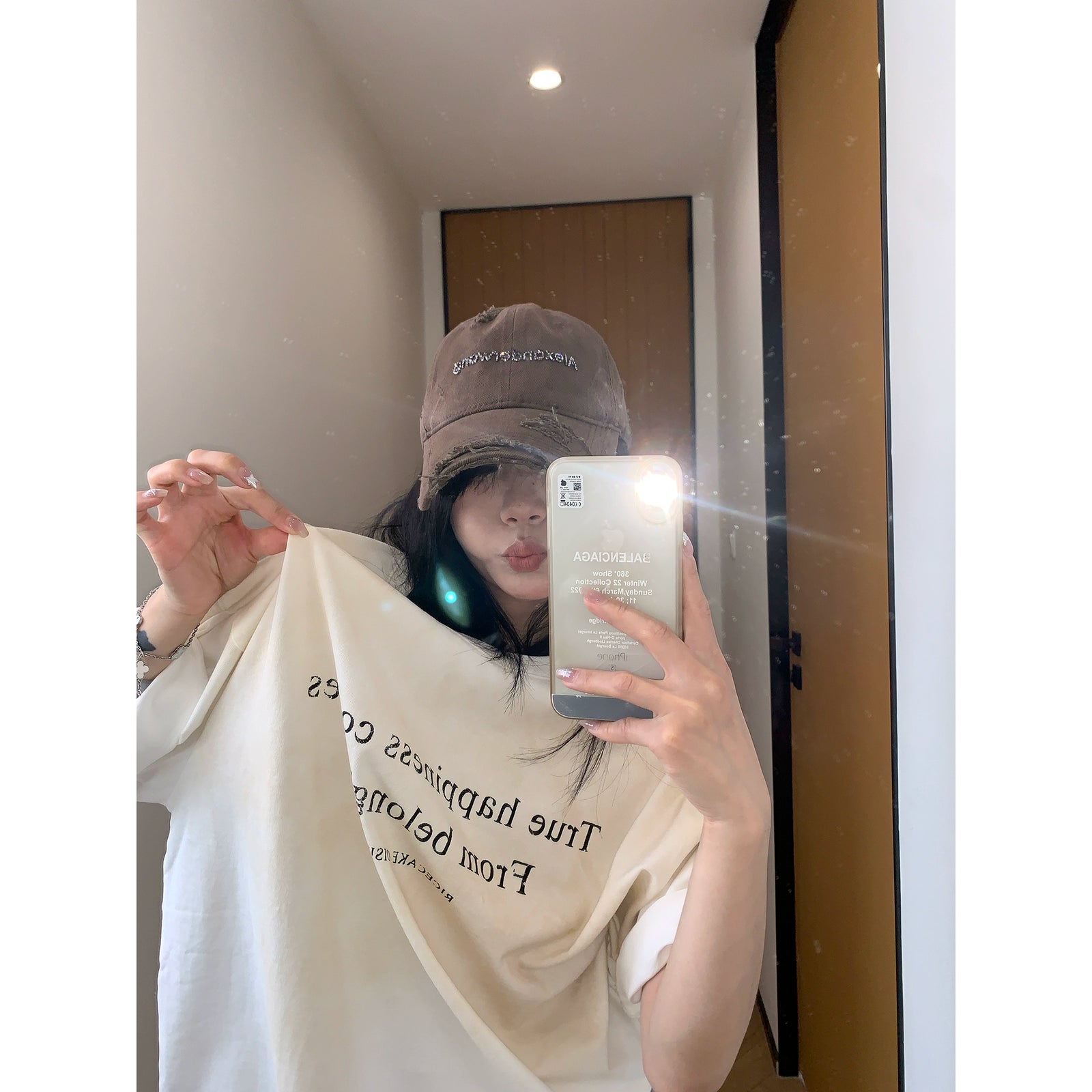 Retro Harf Baskılı Bol Pamuk T-shirt