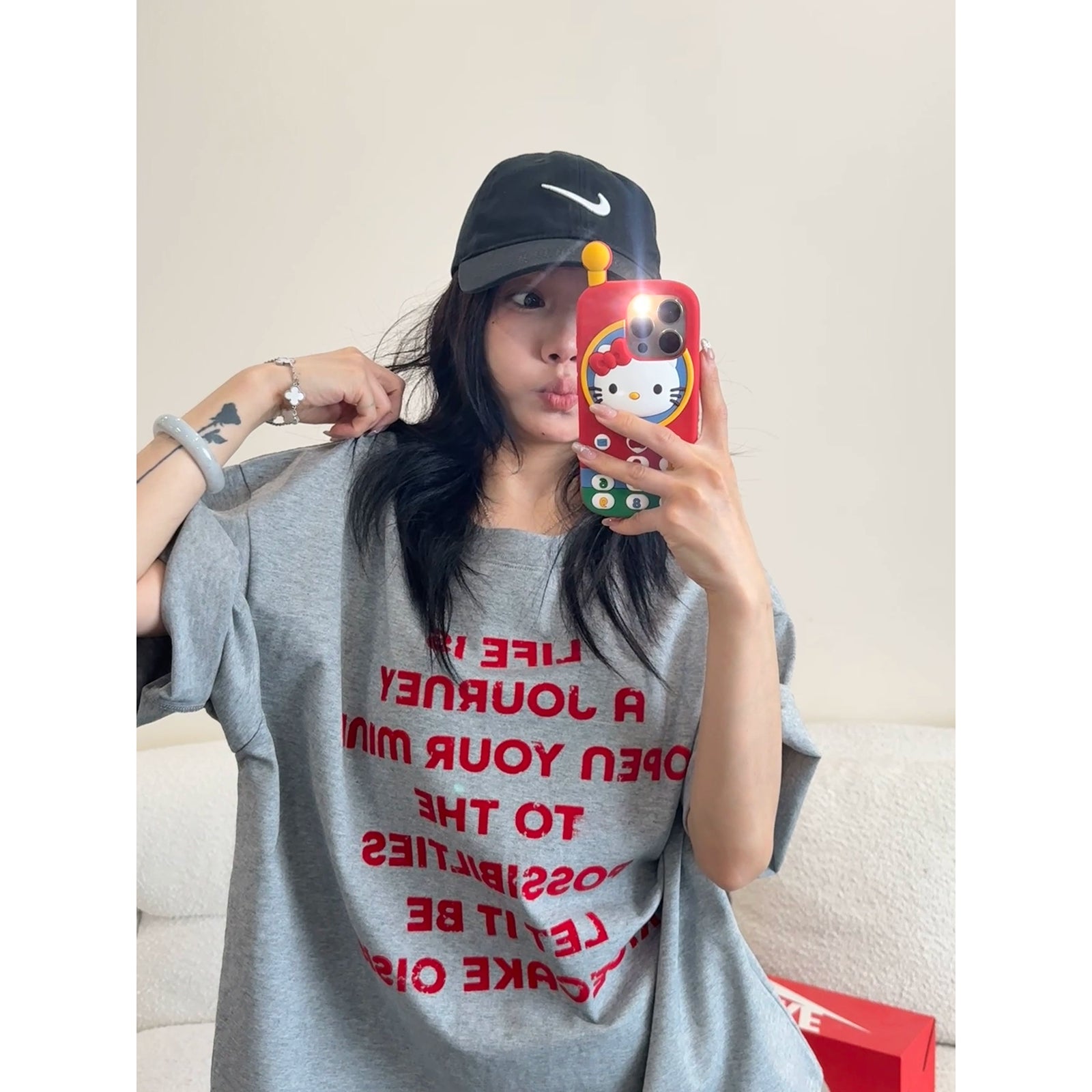 Pamuk Retro Harf Baskılı Bol T-shirt
