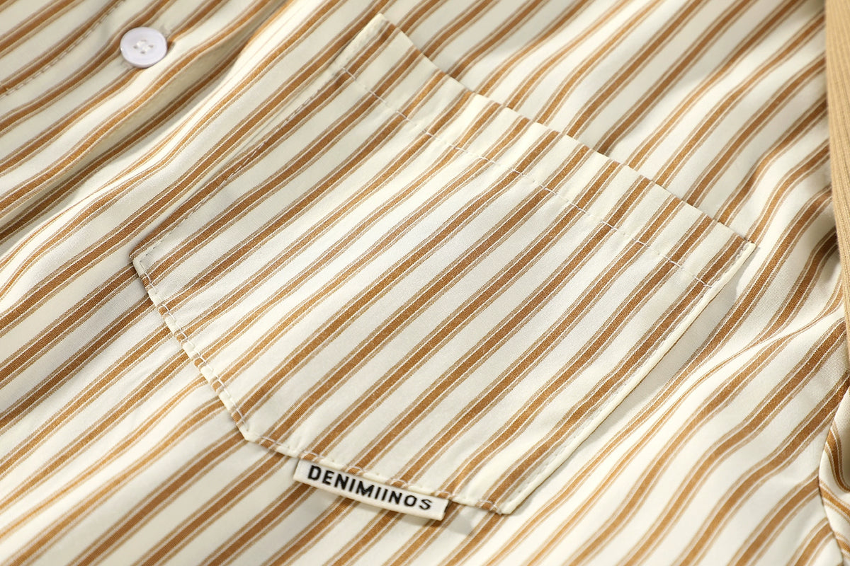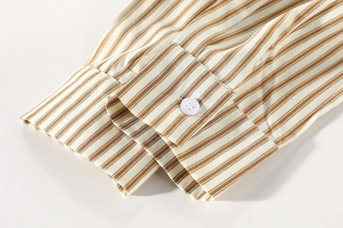 Çizgili Şal Yaka Uzun Kollu Gömlek Seti