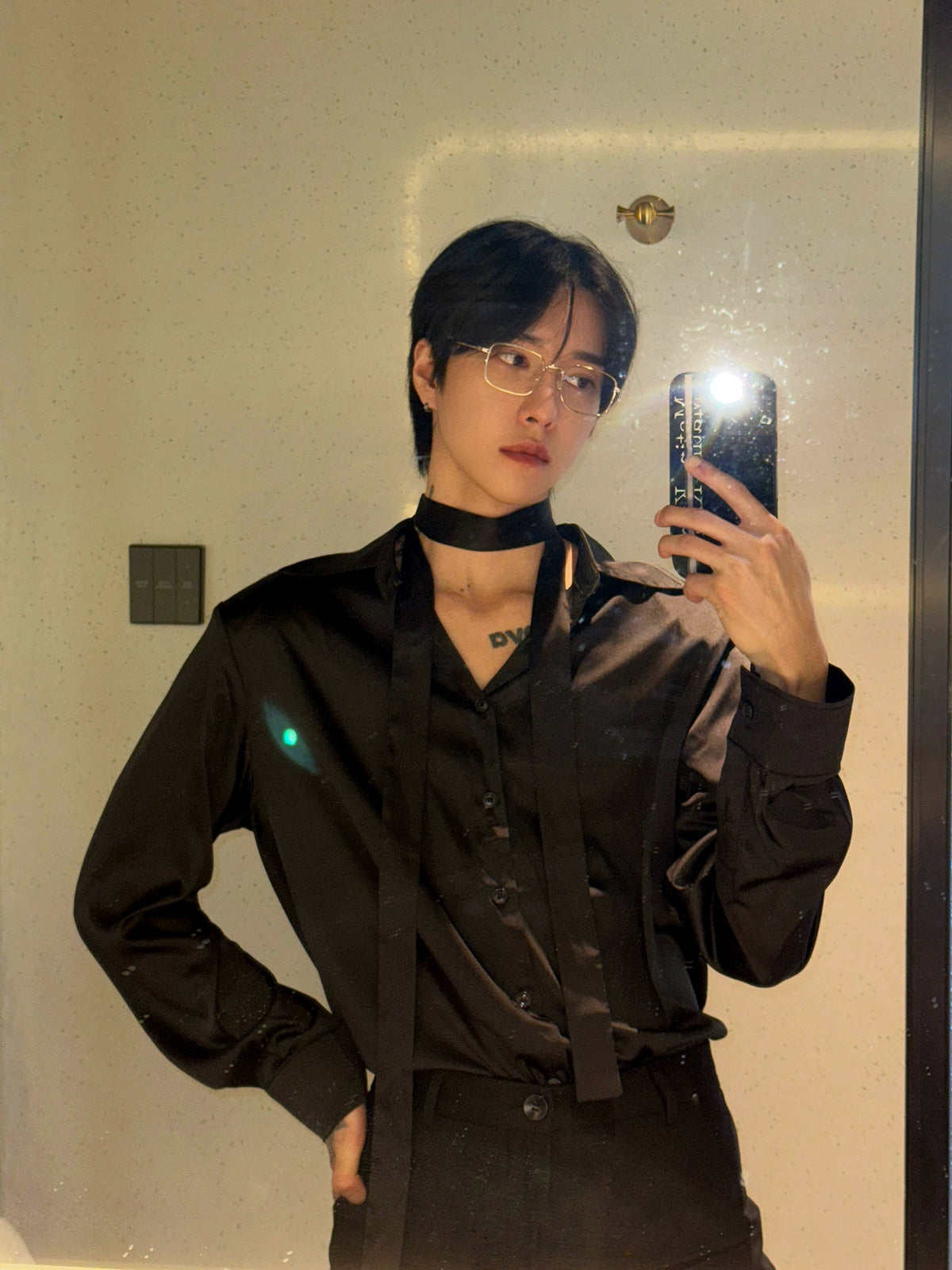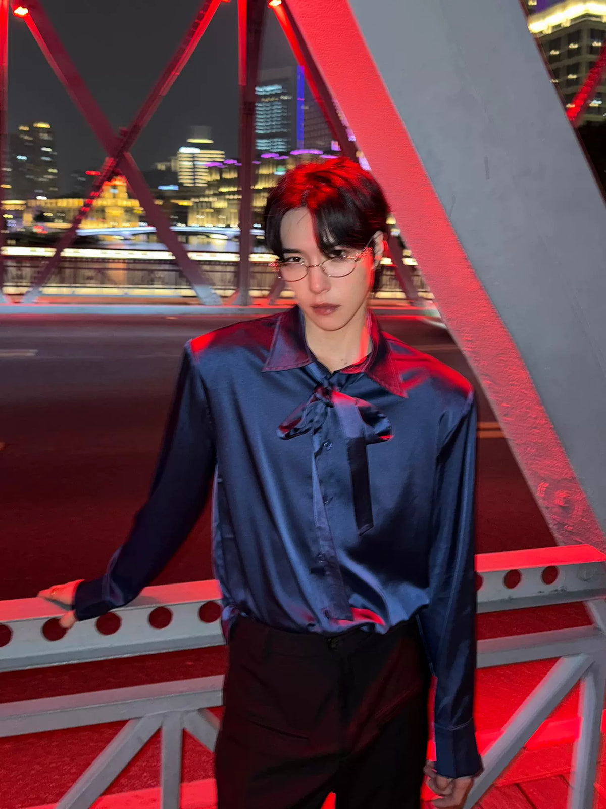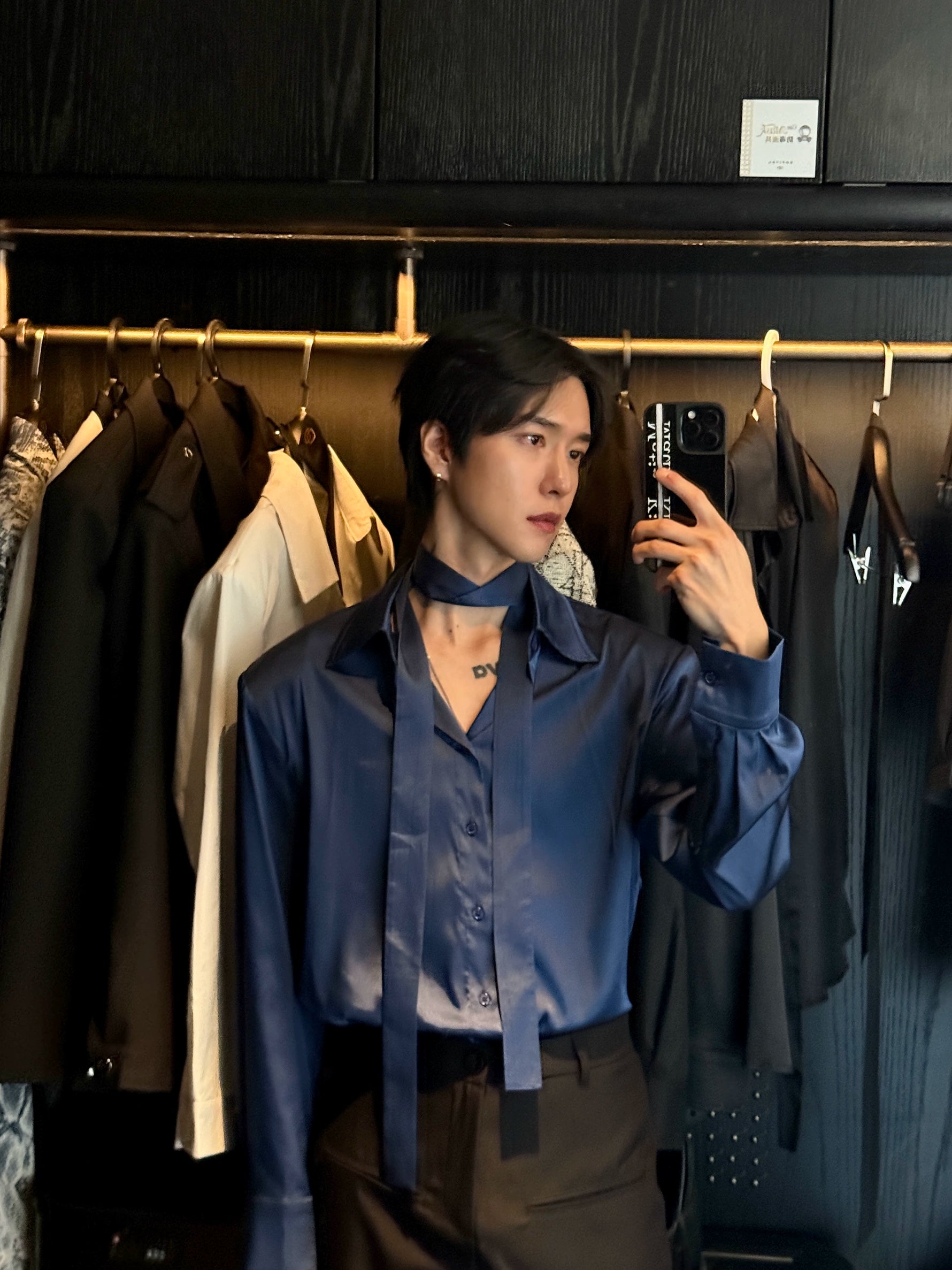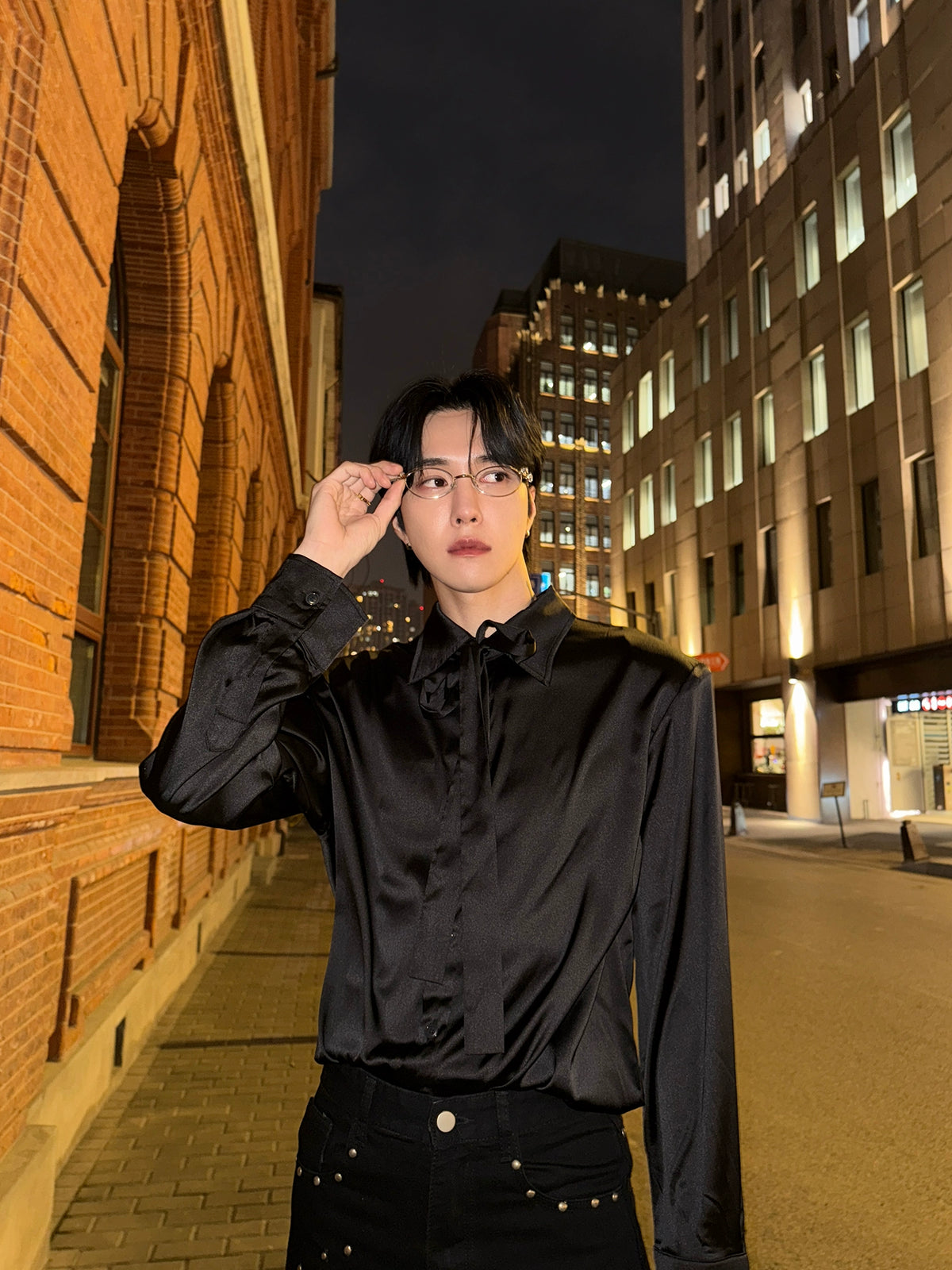Retro Saten Uzun Kollu Drape Gömlek