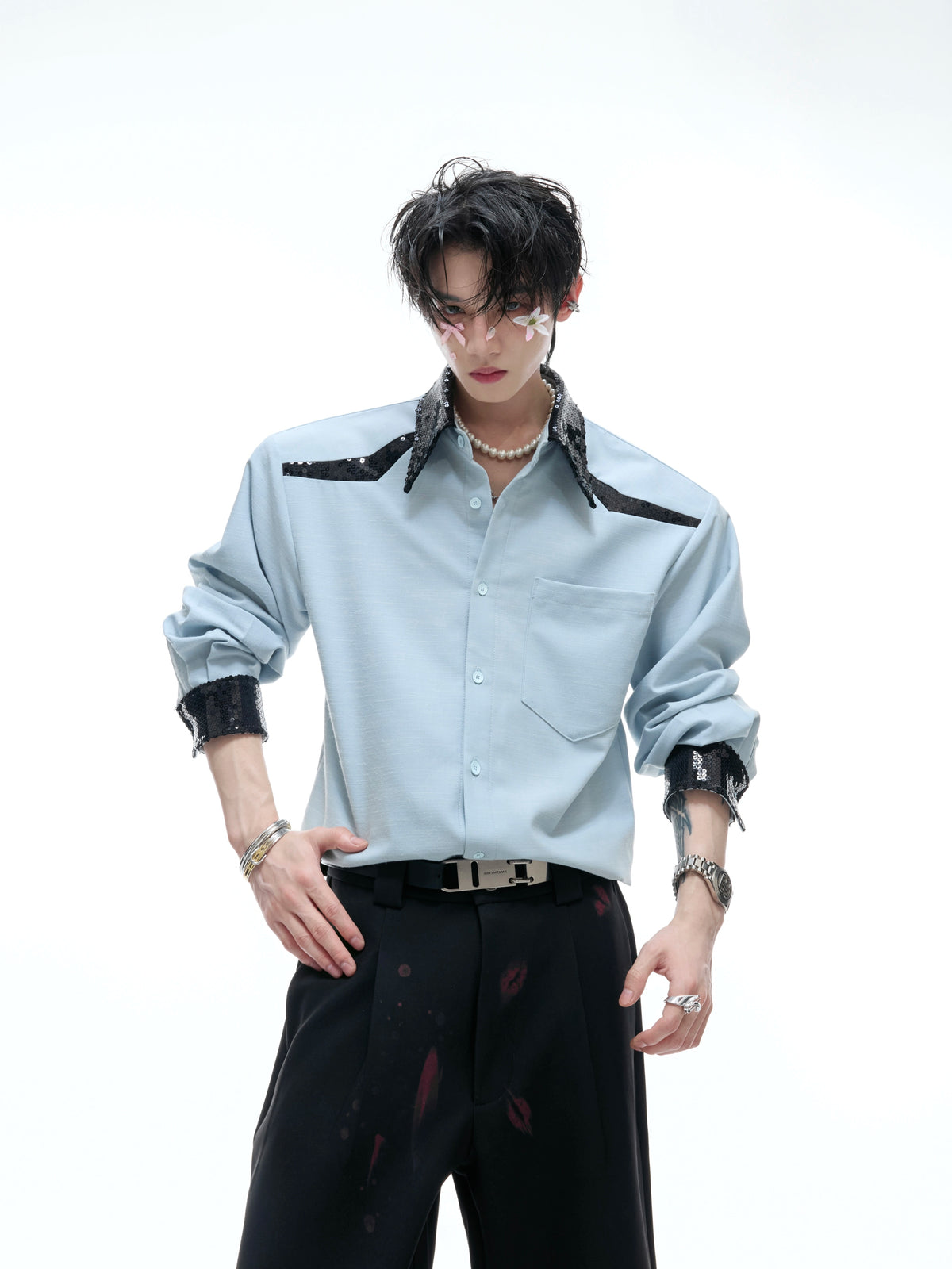 Sıralı Kontrast Dikiş Drape Yaka Gömlek