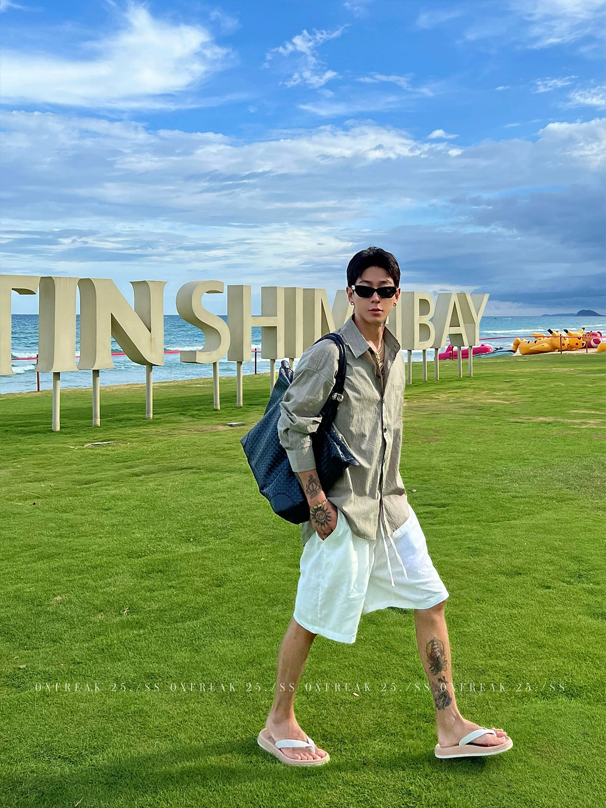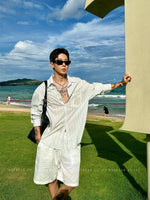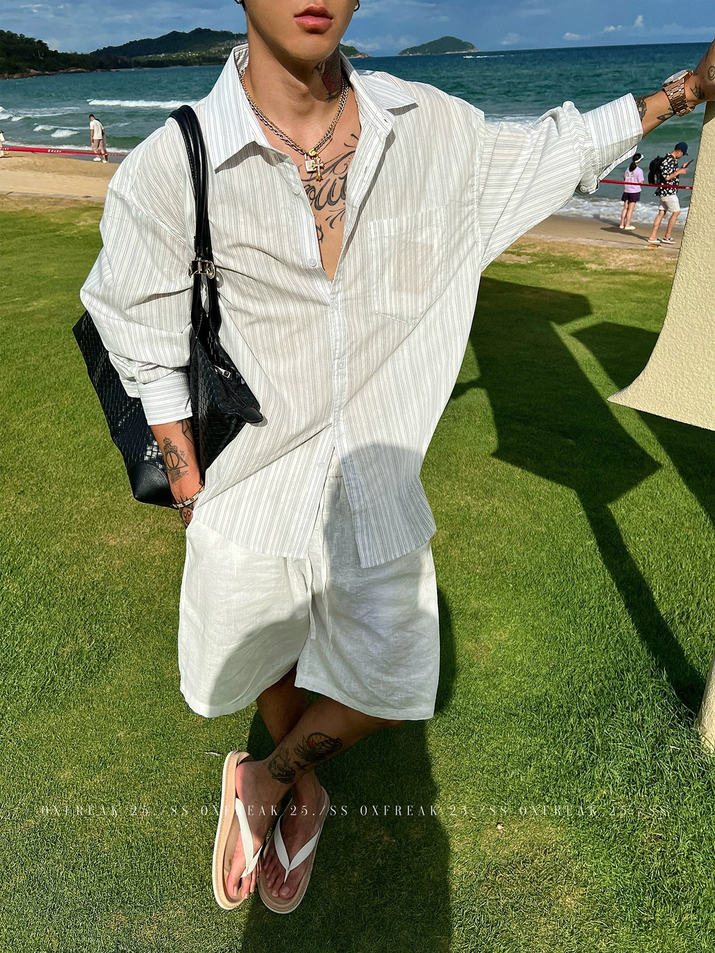 Çizgili Küba Yaka Kısa Kollu Gömlek
