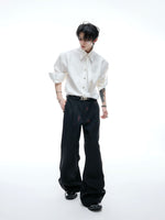 Dokuma Detaylı Yastıklı Omuzlu Geniş Gömlek