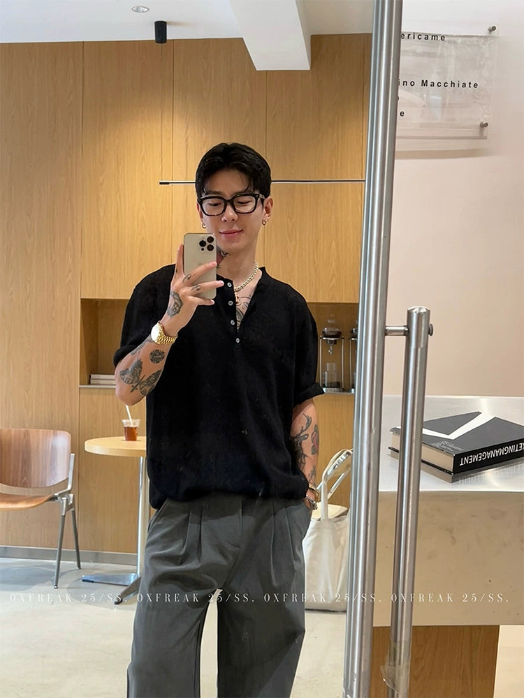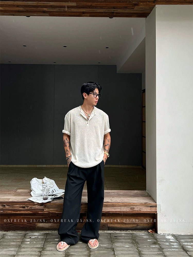 Keten Tencel Triko Henley Kısa Kol Kazak