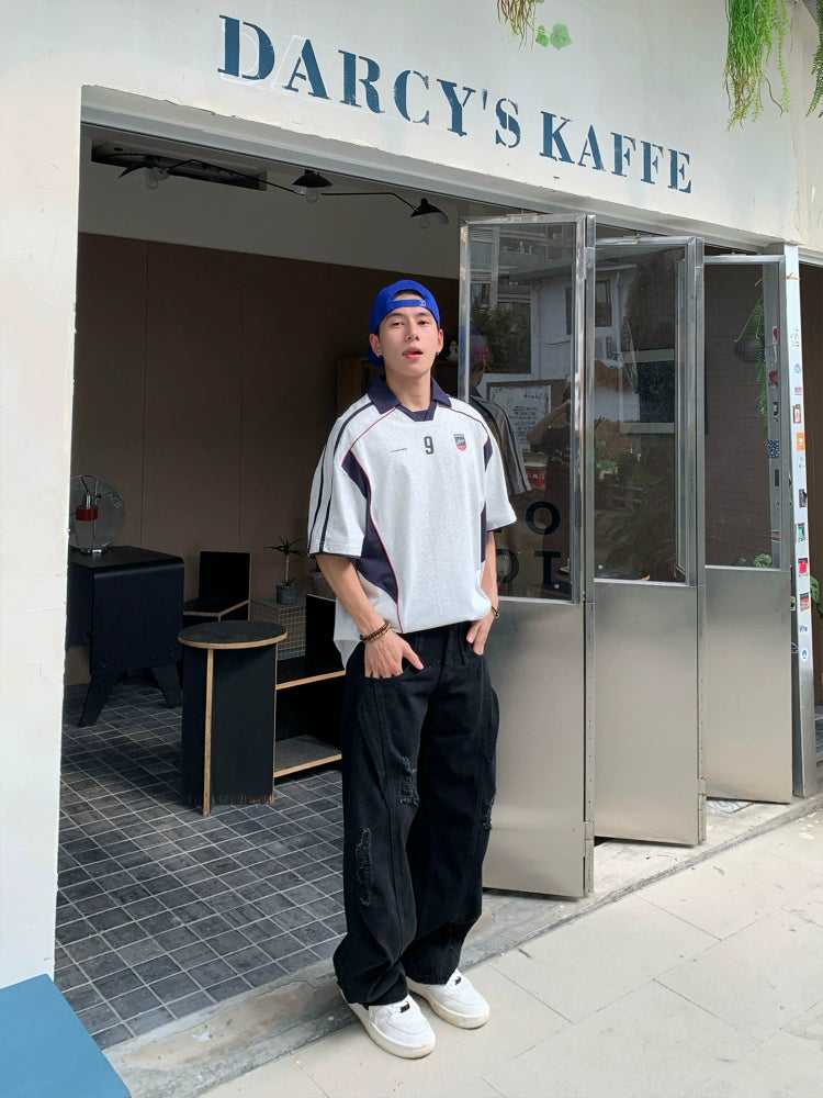 Retro Yama Desenli Polo Yaka Spor Kazak