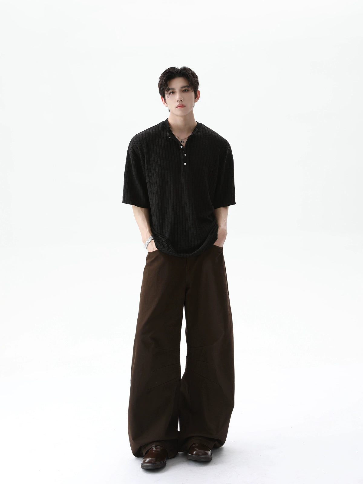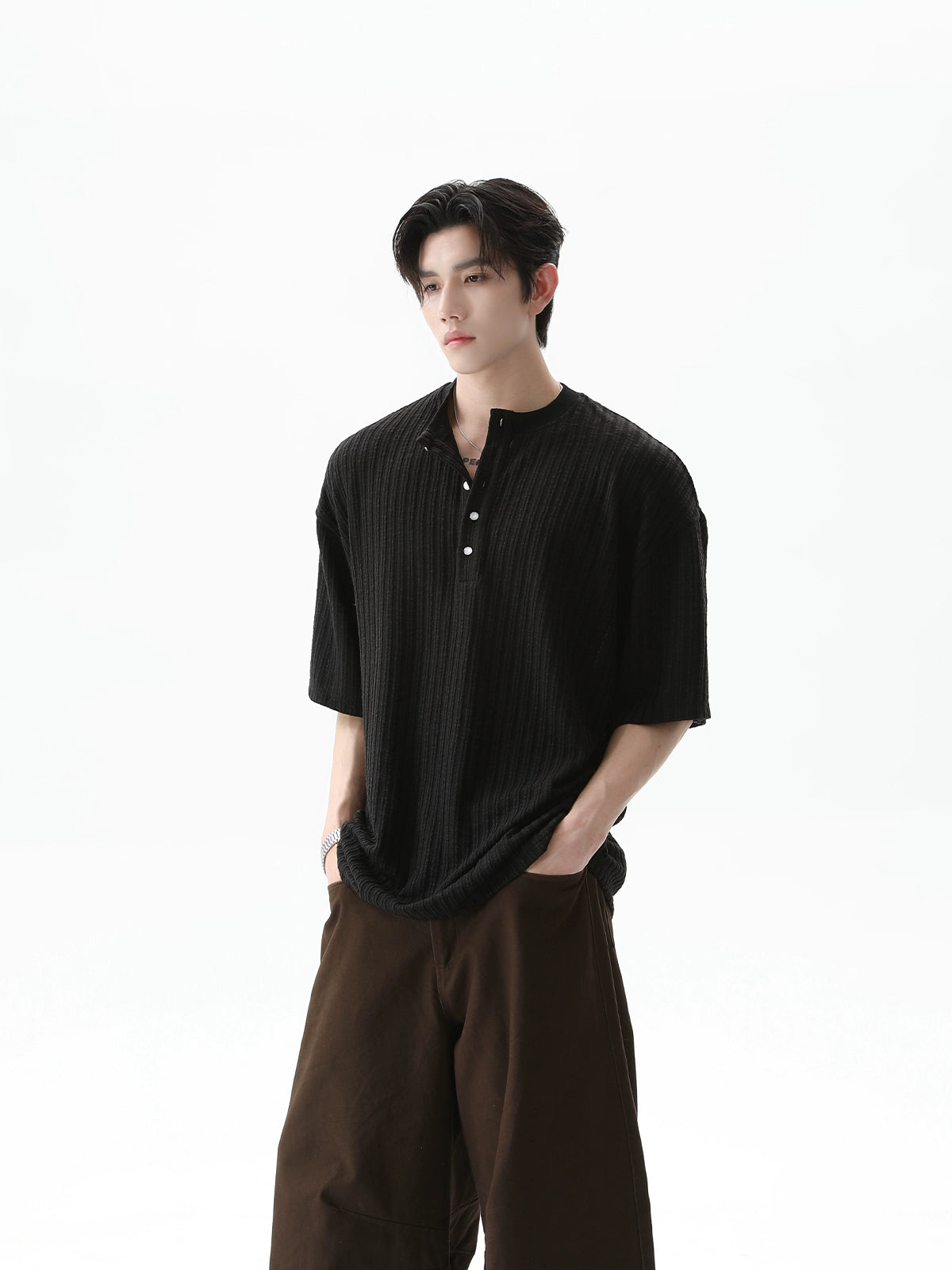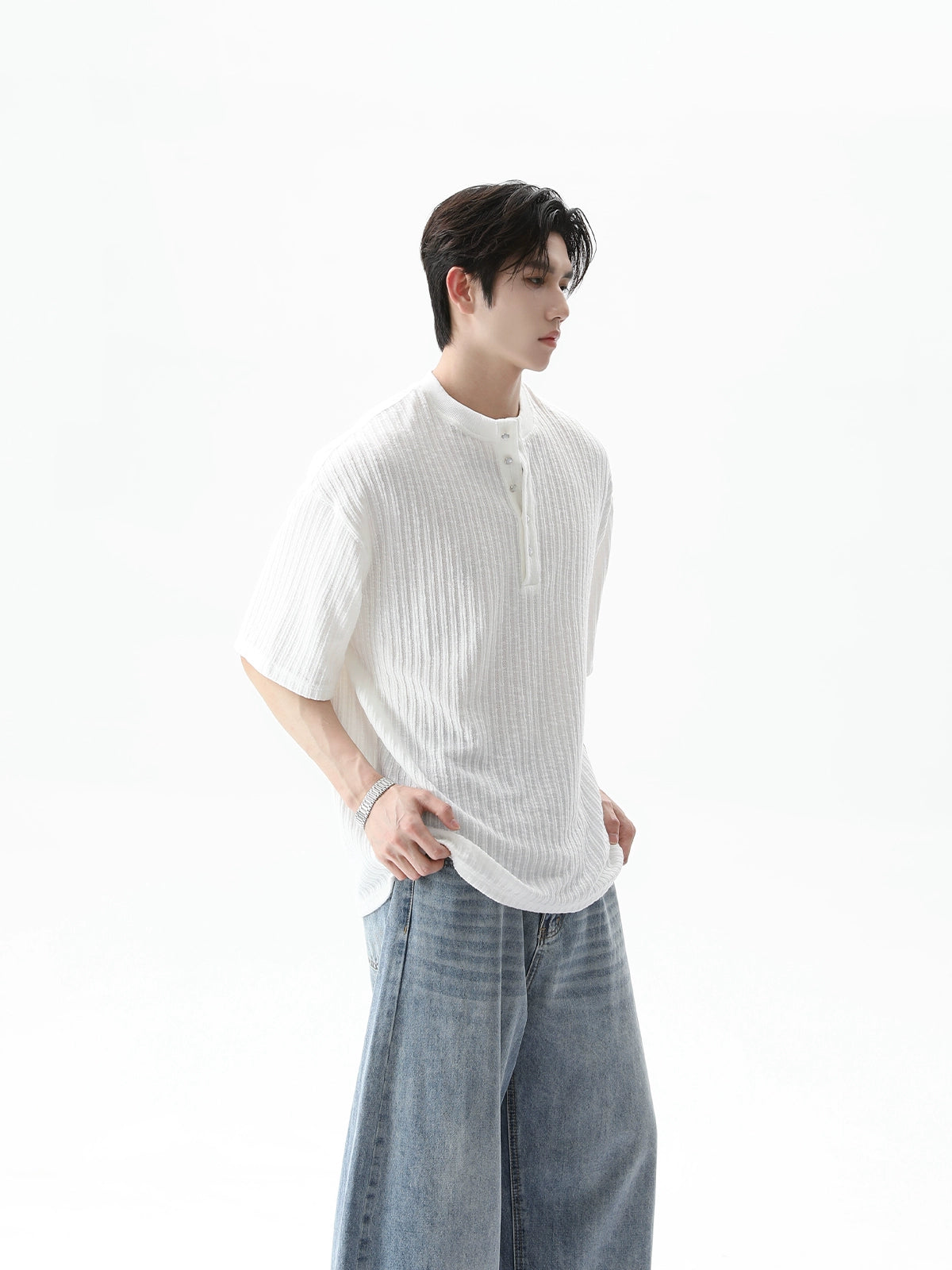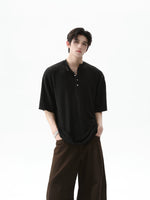 Kırışık Henley Yaka Kısa Kollu Kazak