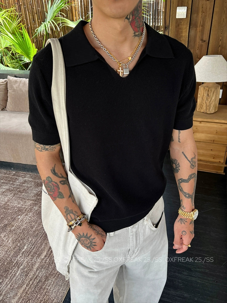 Krep Dokulu V Yaka Kısa Kollu Kazak