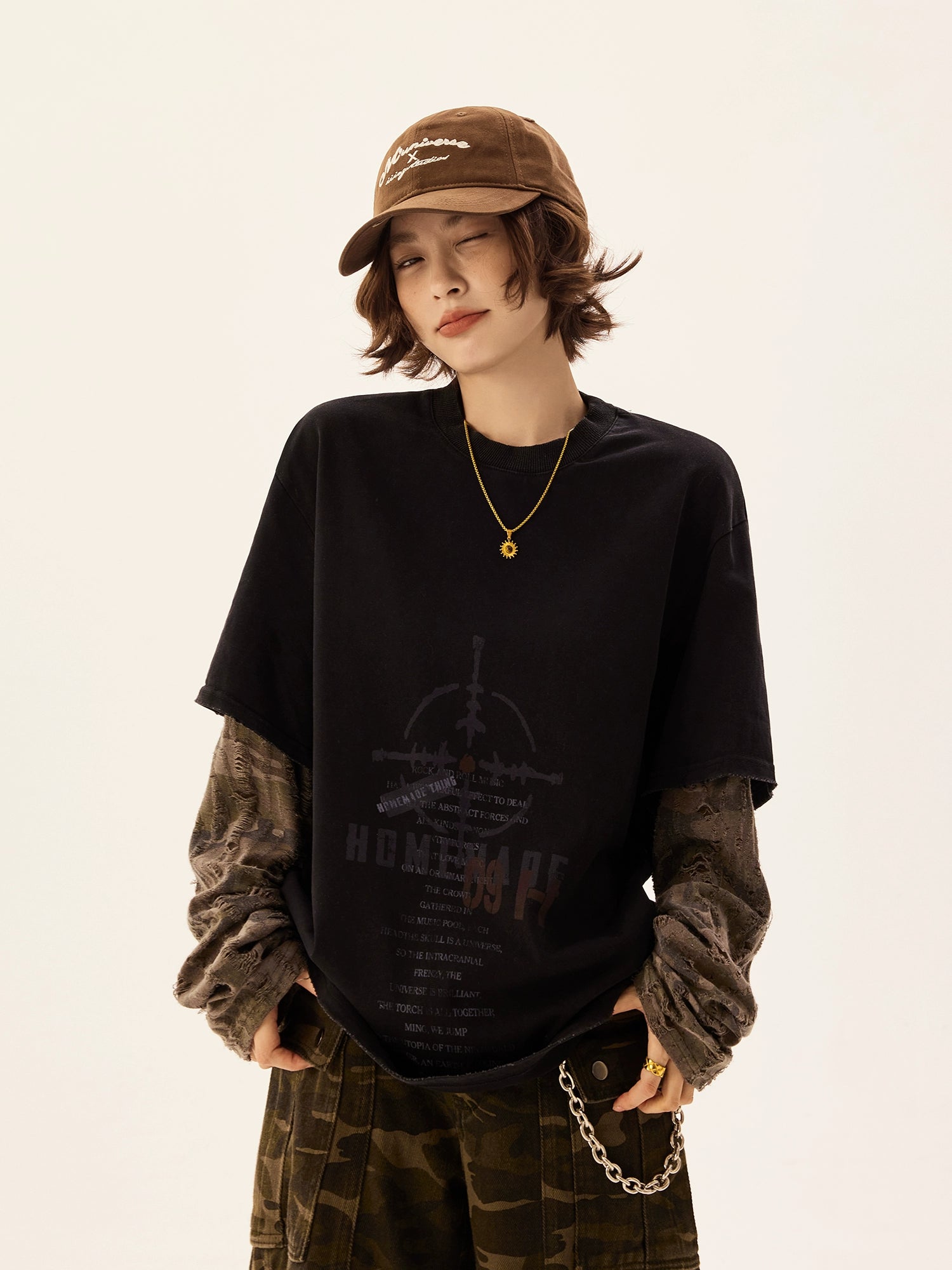 Sıkıntılı Graffiti Baskılı Katmanlı Yüksek Yaka Üst