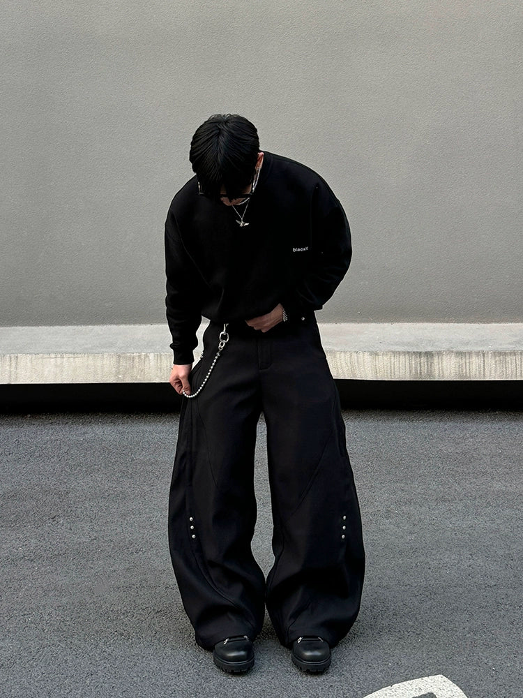 Wide-Leg Rivet Casual Pants