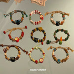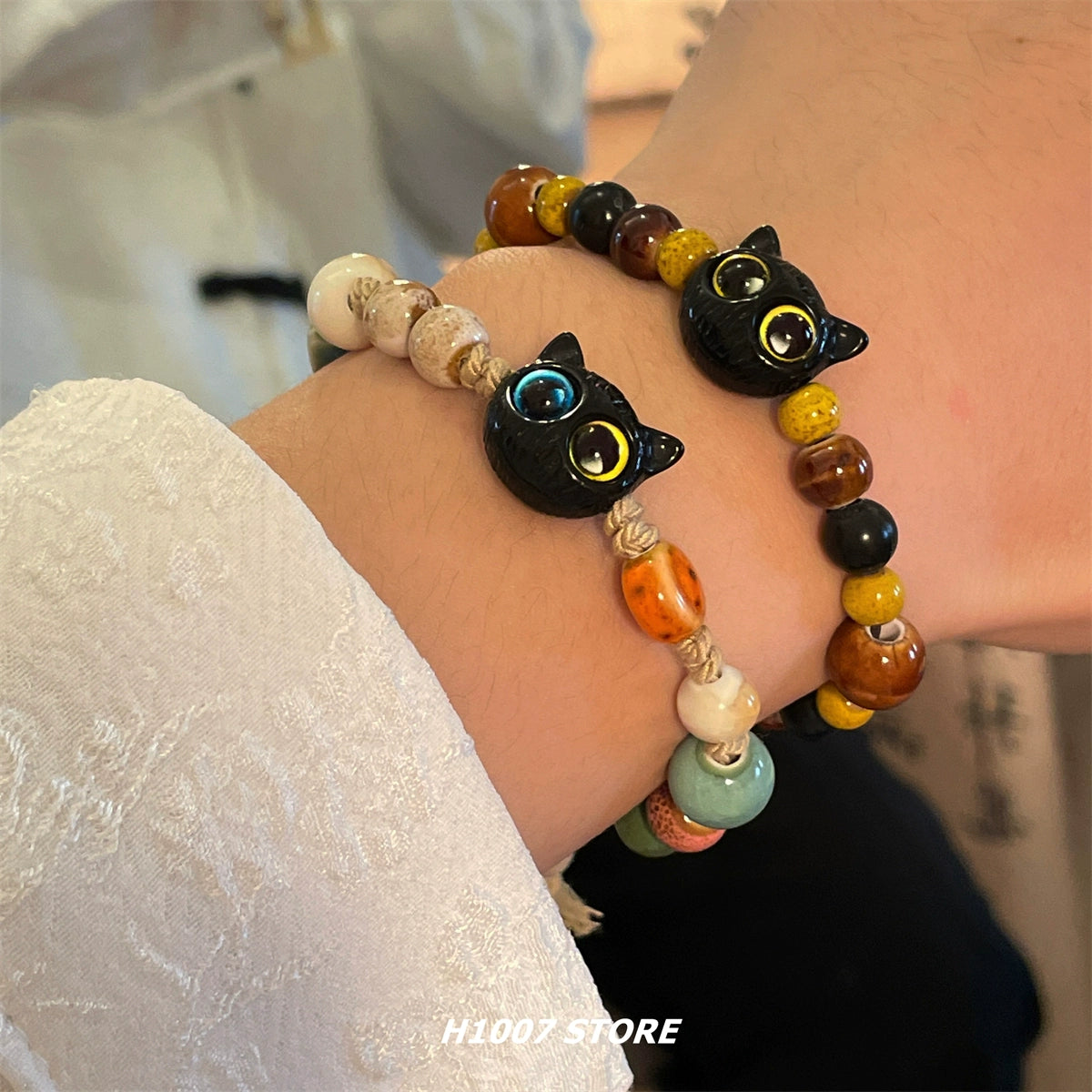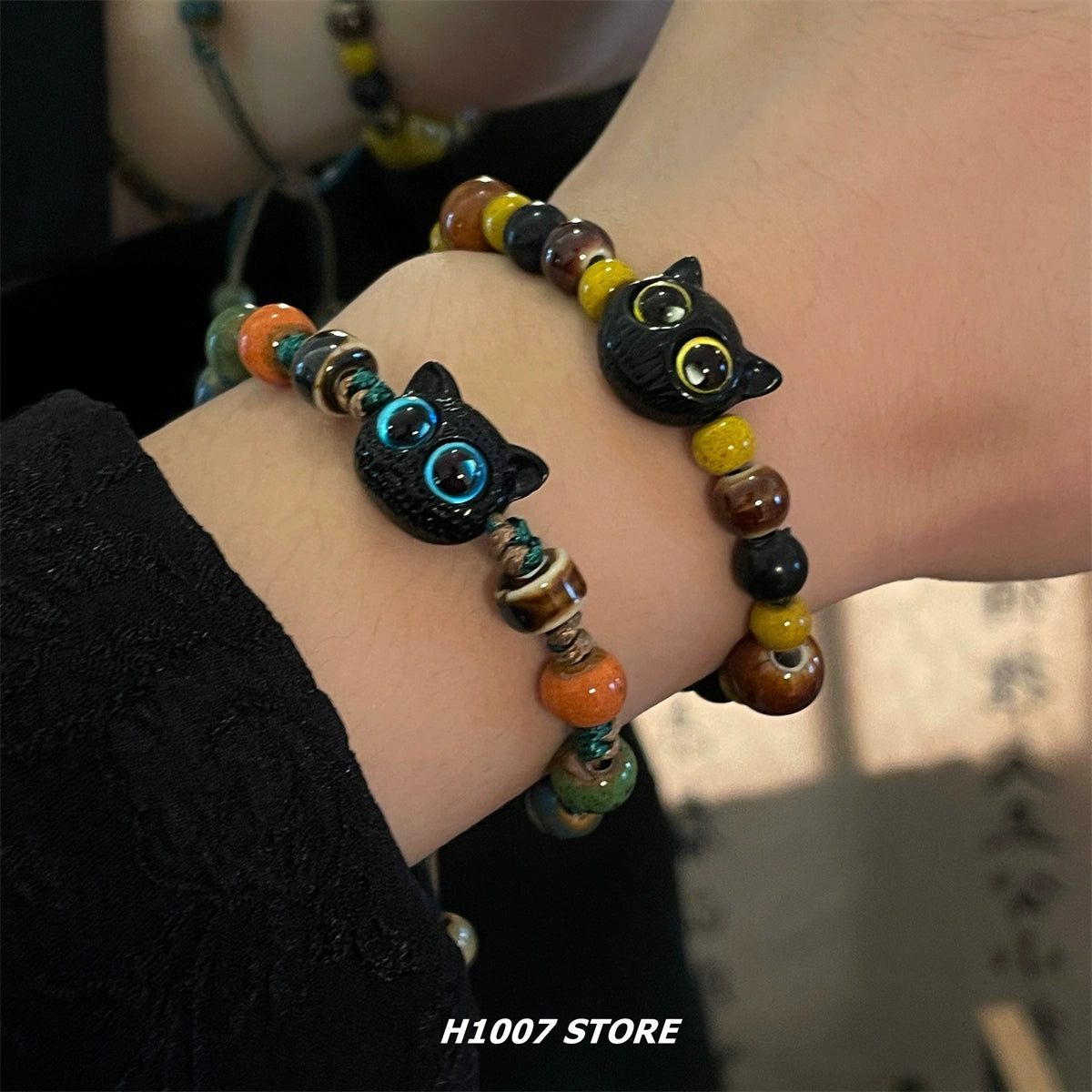 Seramik Kedi Boncuklu Örgü İp Bilezik