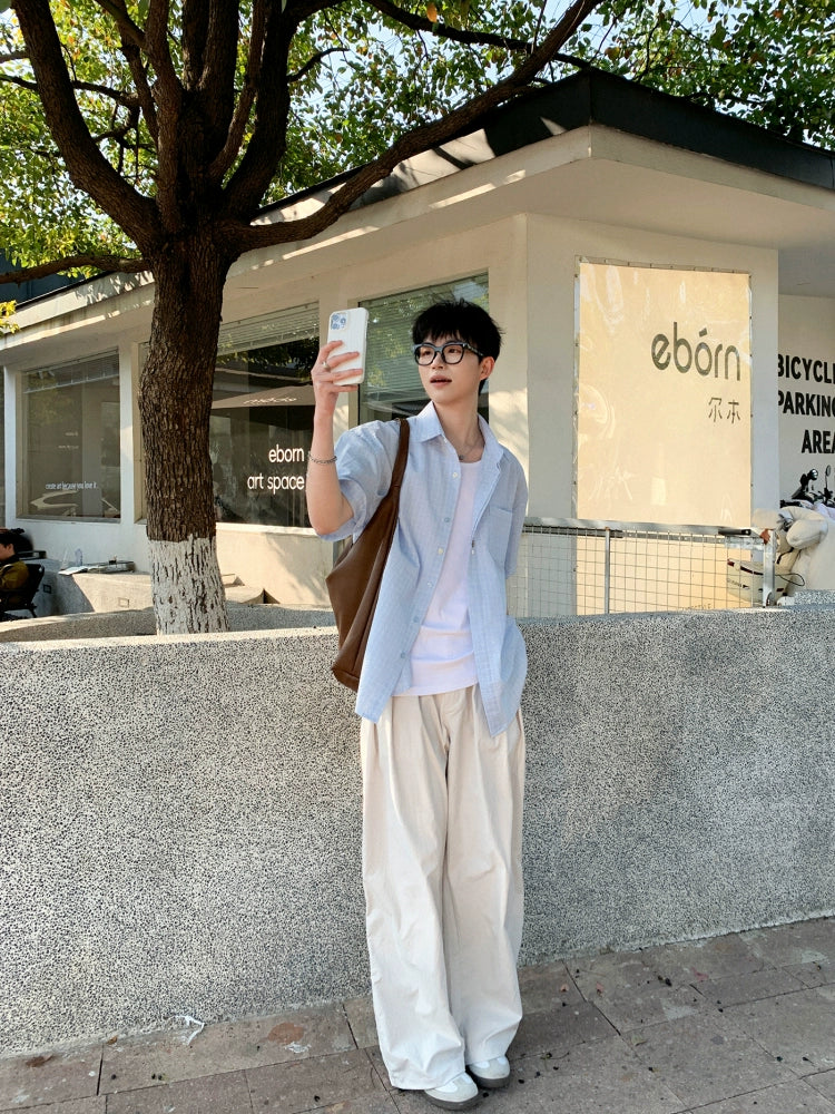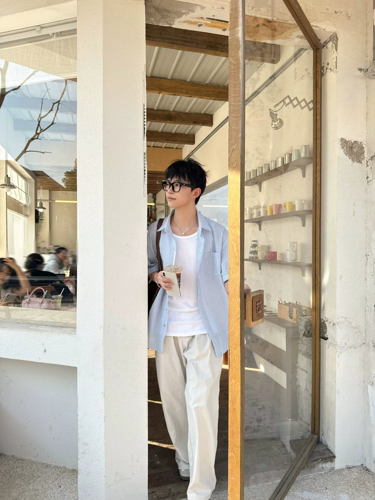 Pamuklu Kareli Kısa Kollu Rahat Gömlek
