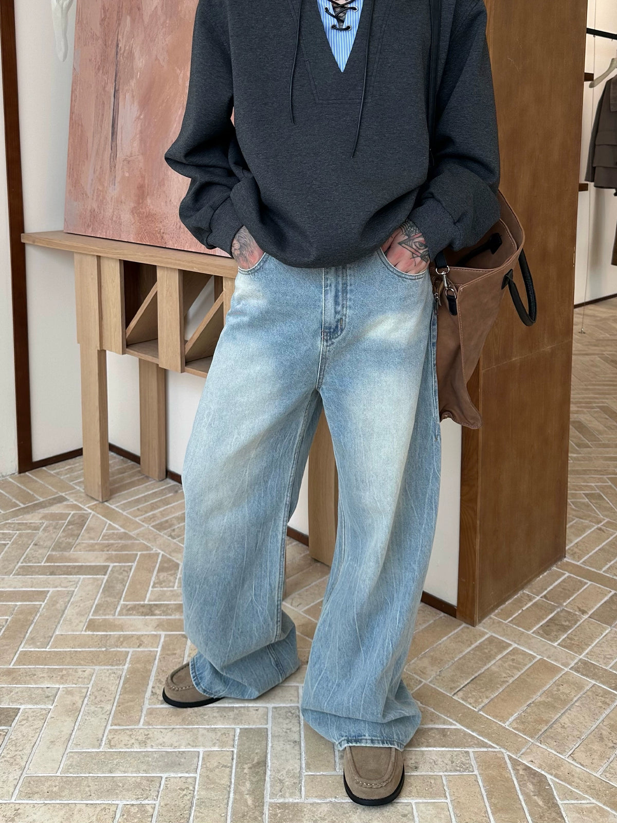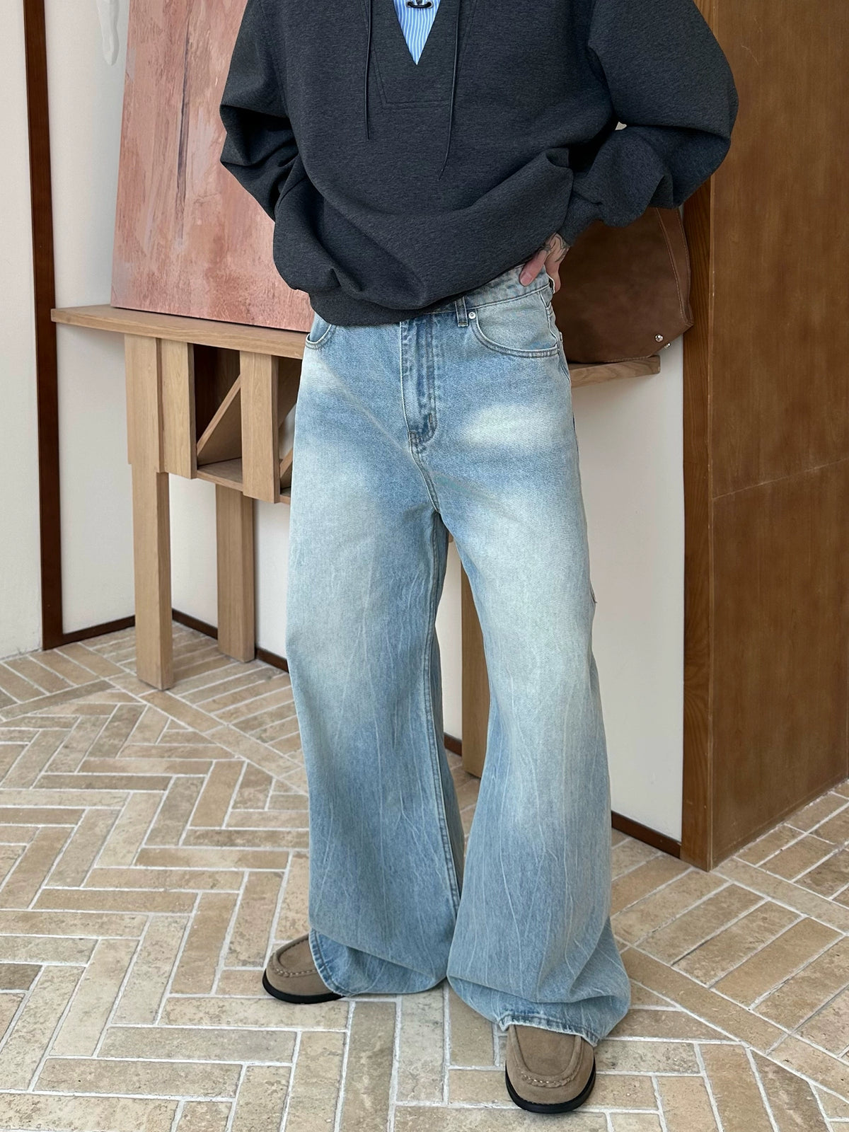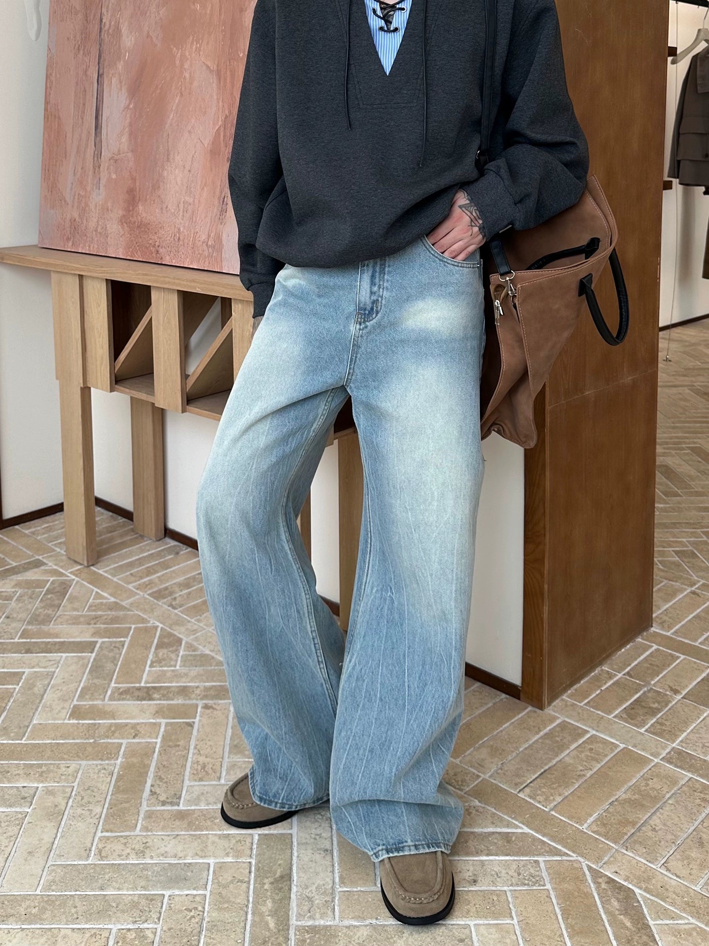 Yıpranmış Yıkama Geniş Paça Jeanler