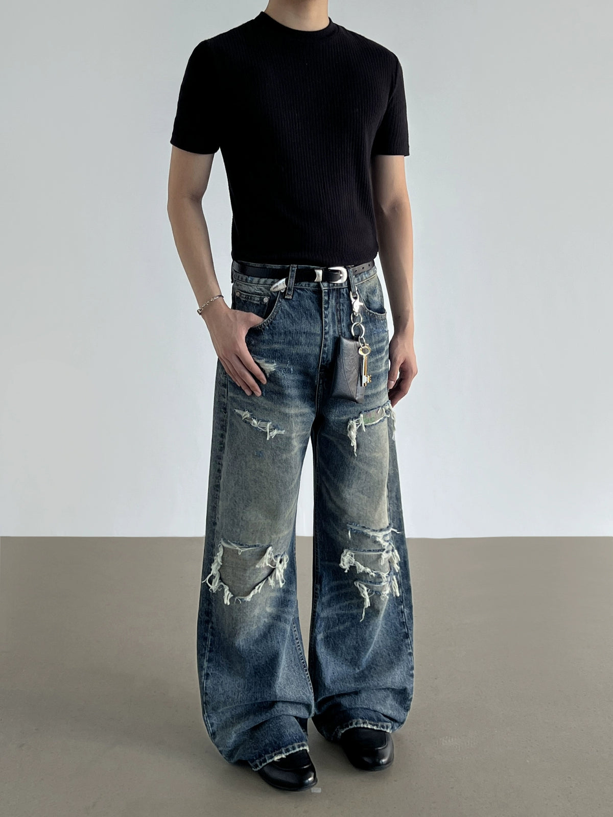 Yırtık Geniş Paça Bol A-Line Kot Pantolon