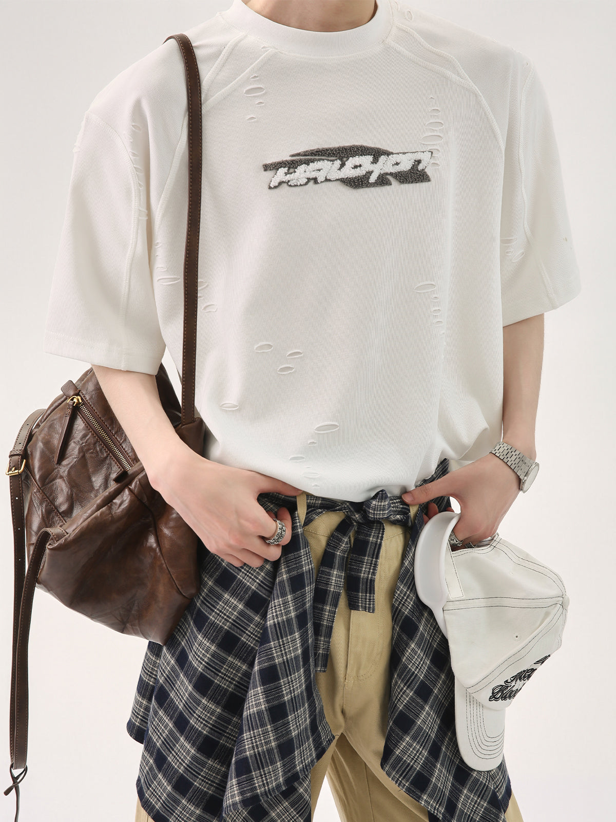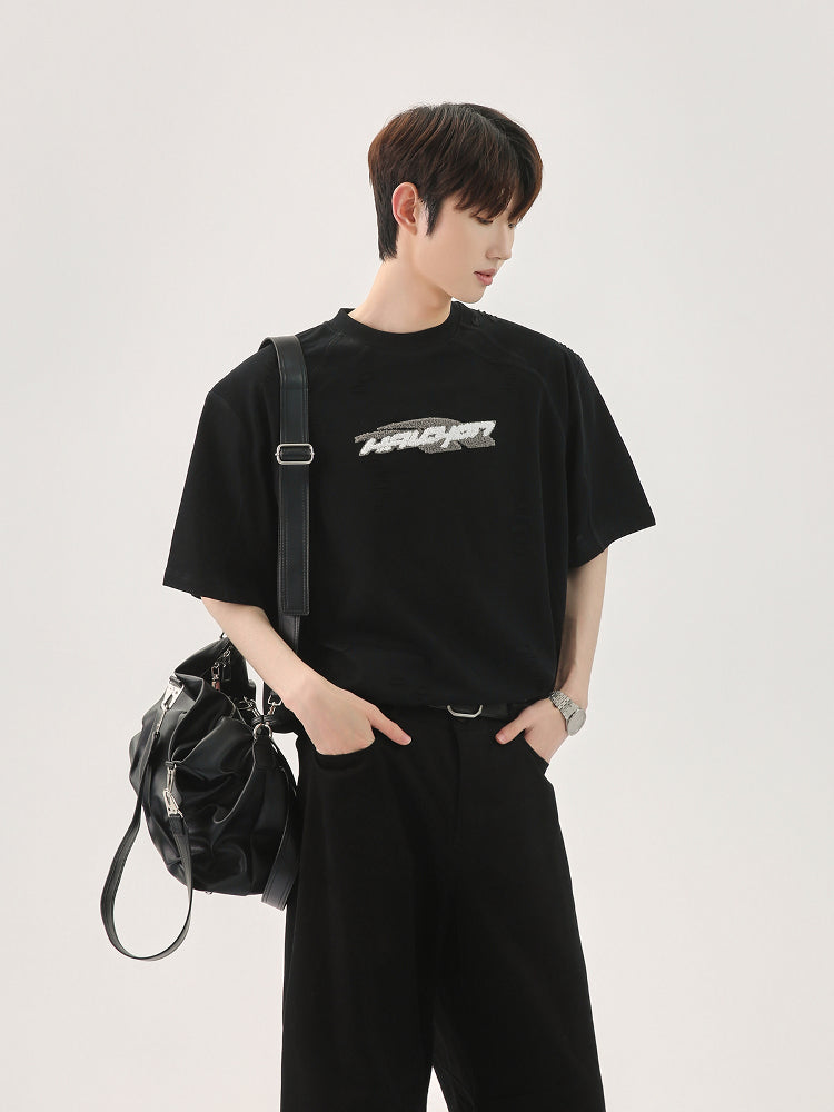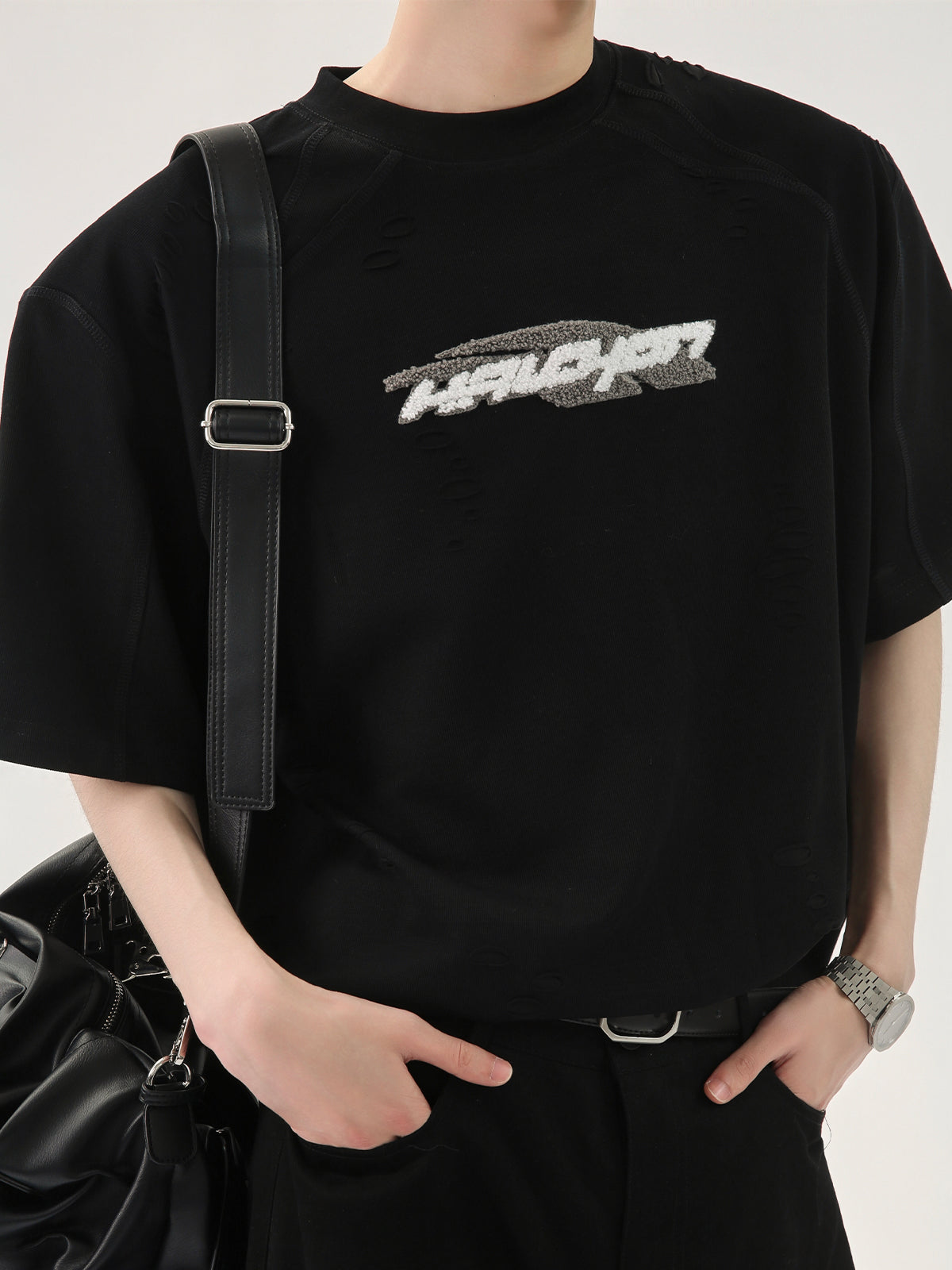 Kabartmalı Harf Yıpranmış Kısa Kollu Tişört