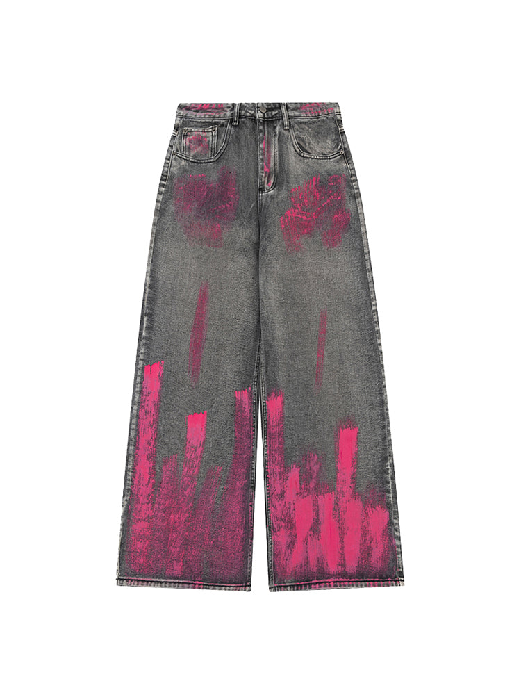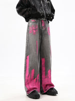 Grafiti Drape Geniş Paça Jean Pantolon