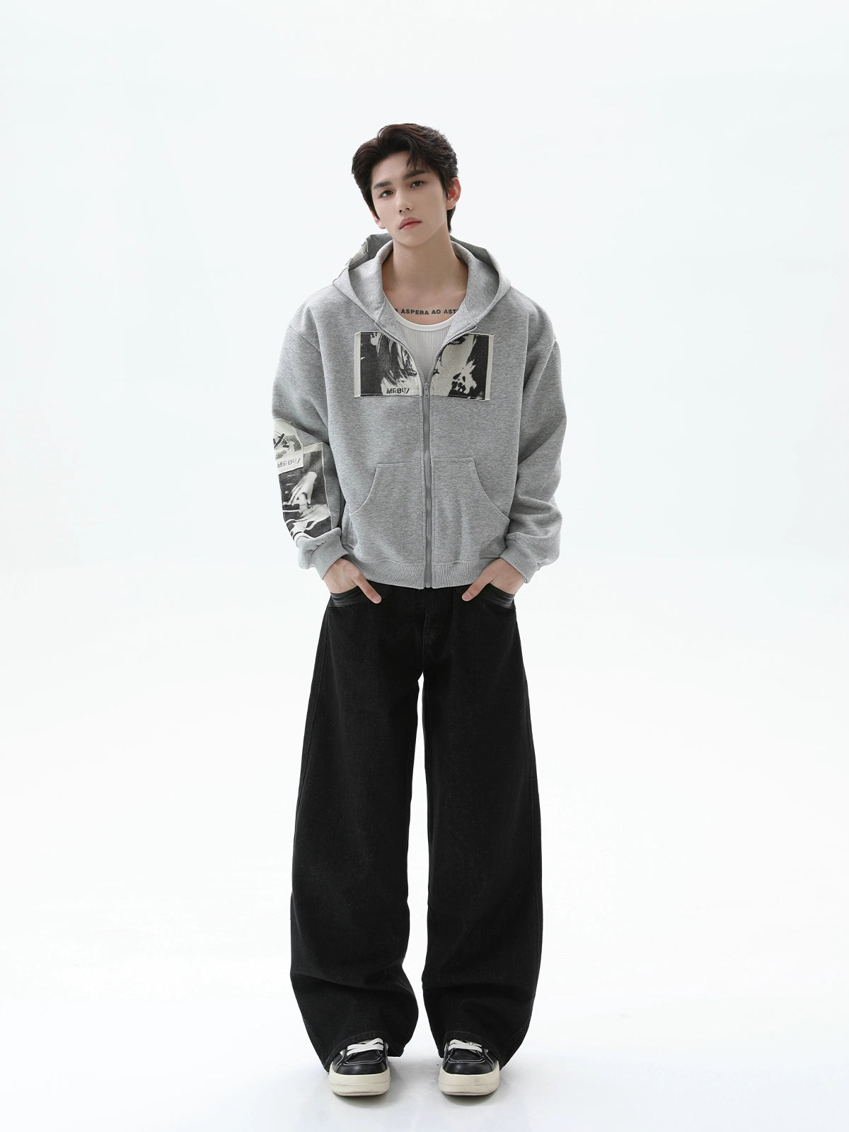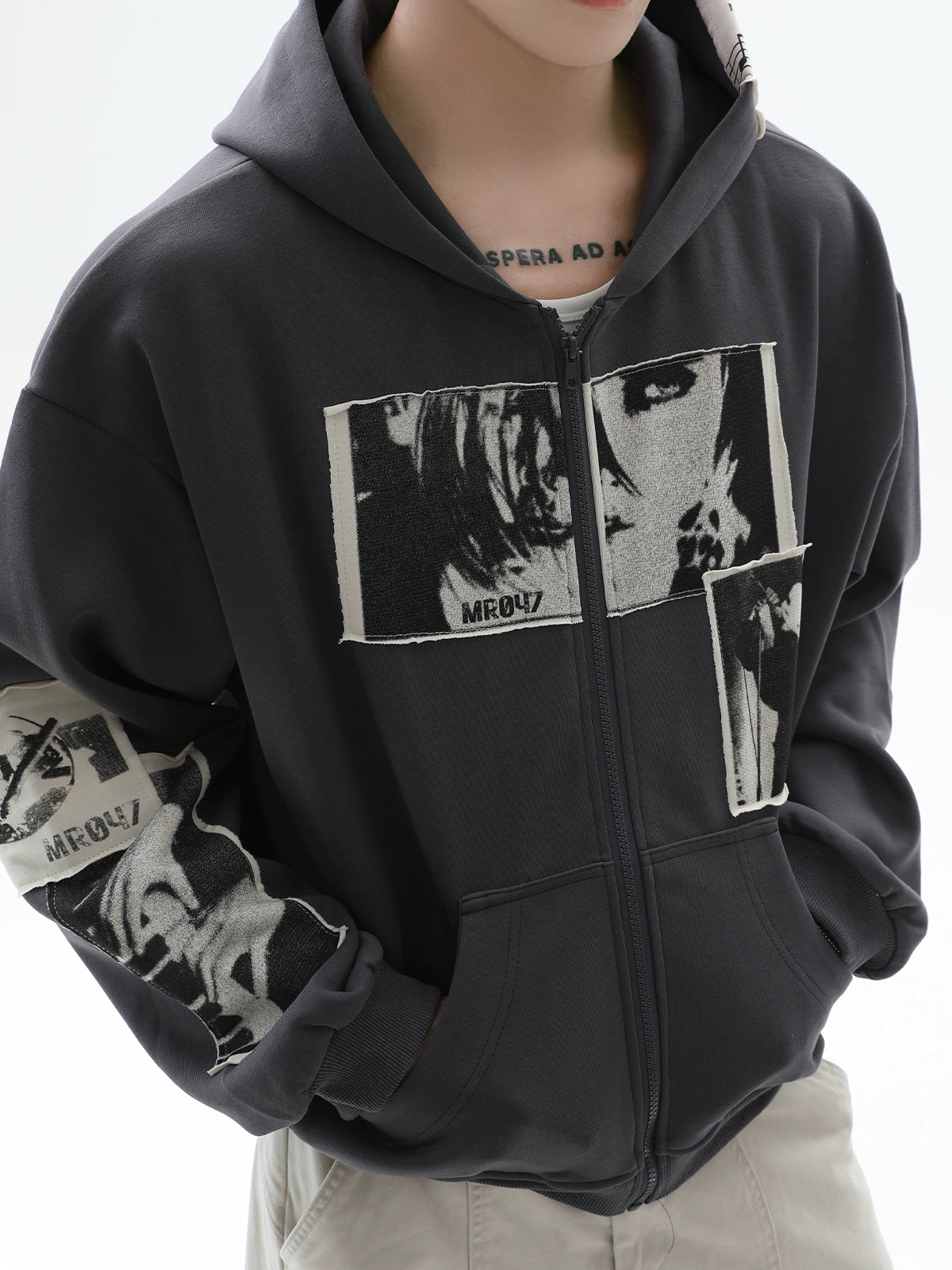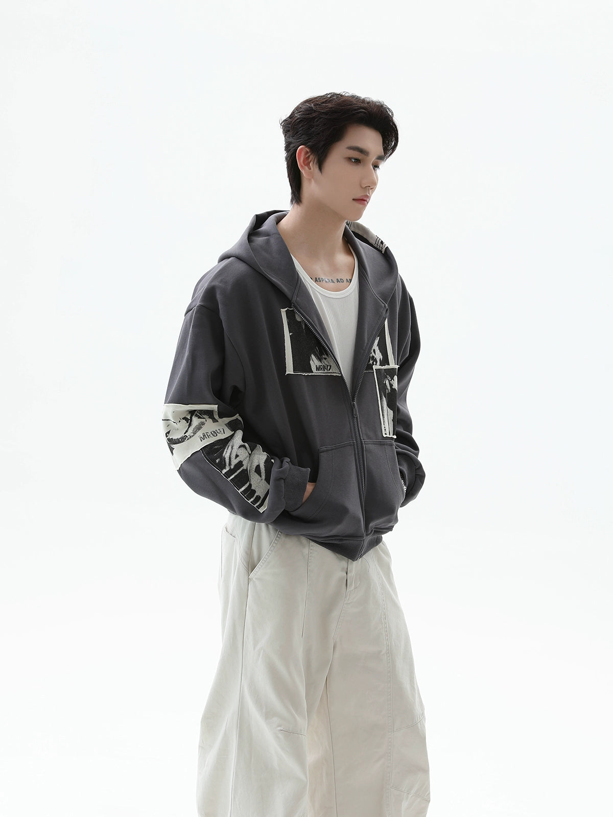 Yaman Baskılı Fermuarlı Kapüşonlu Sweatshirt
