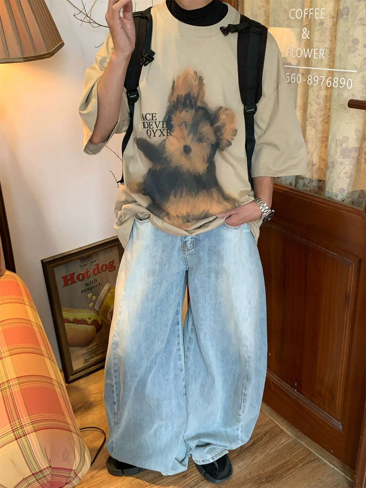 Yavru Köpek Baskılı Bol Kesim Yüksek Yakalı Gömlek