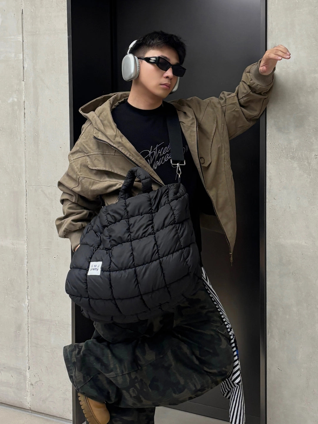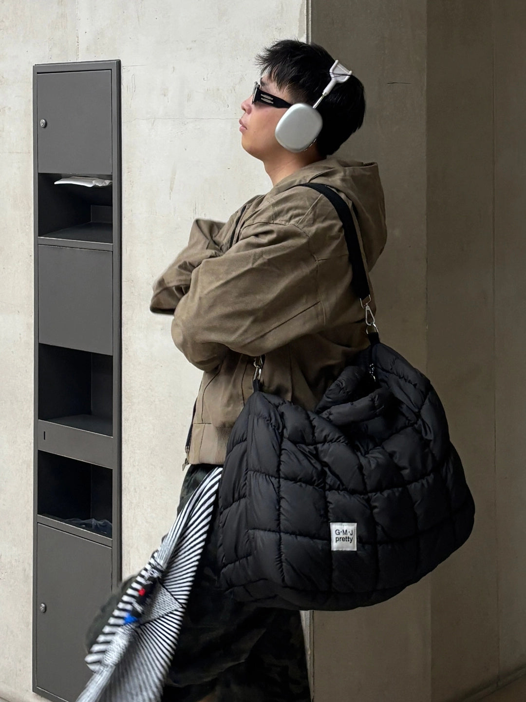 Yastıklı Pamuklu Aşağı Büyük Messenger Çantası