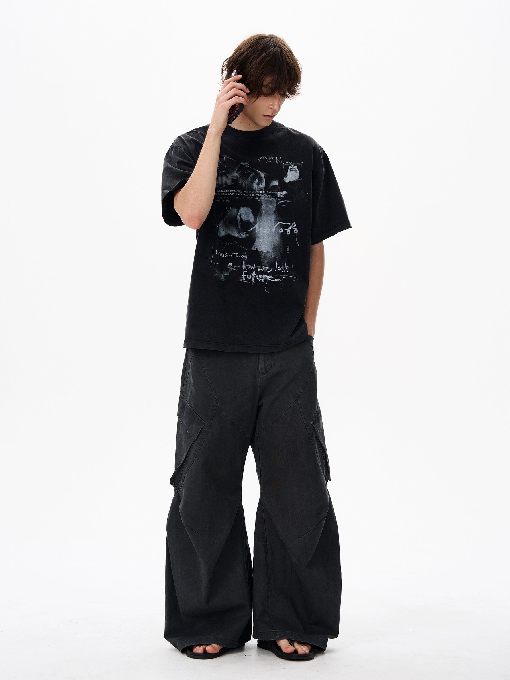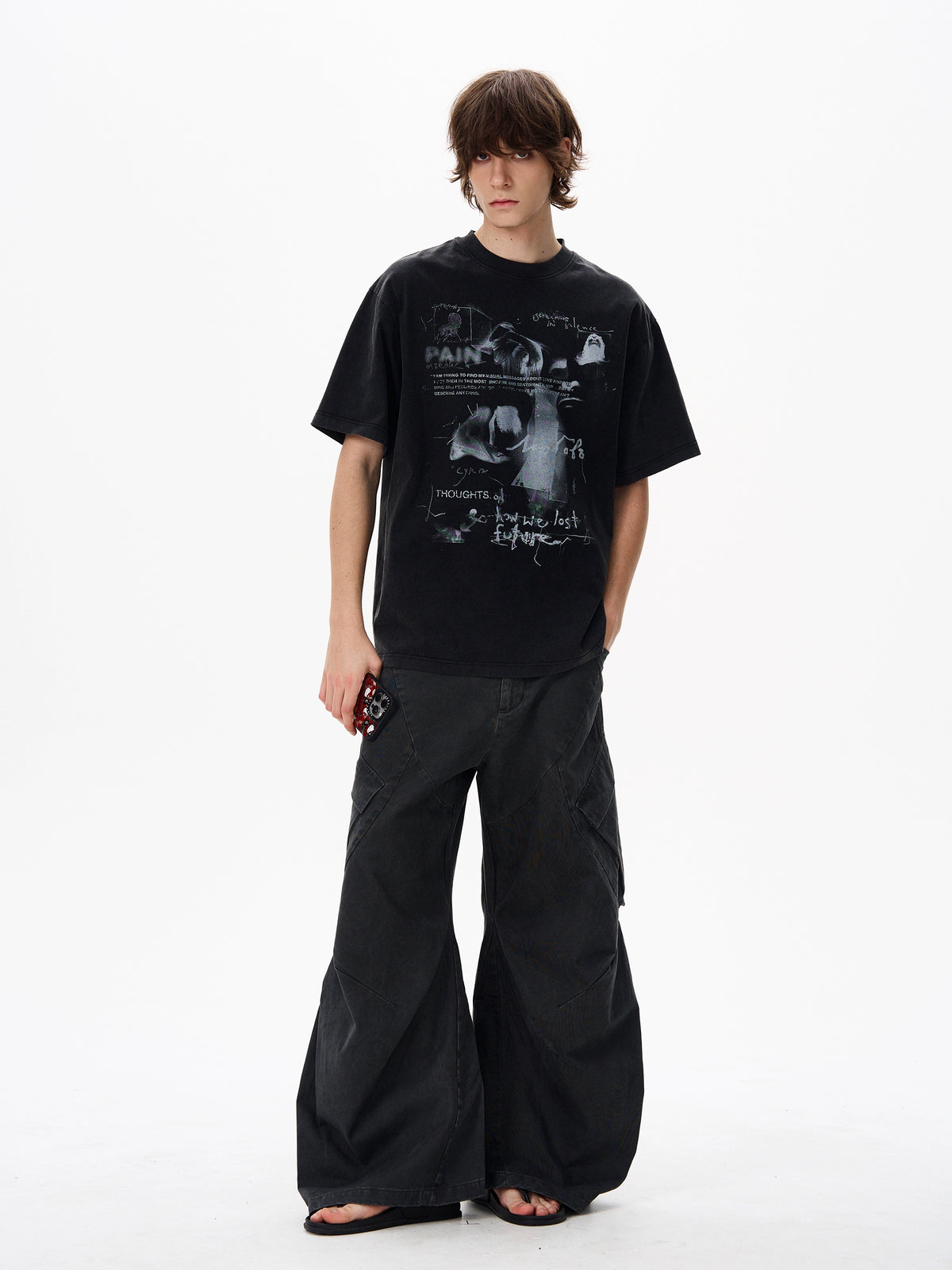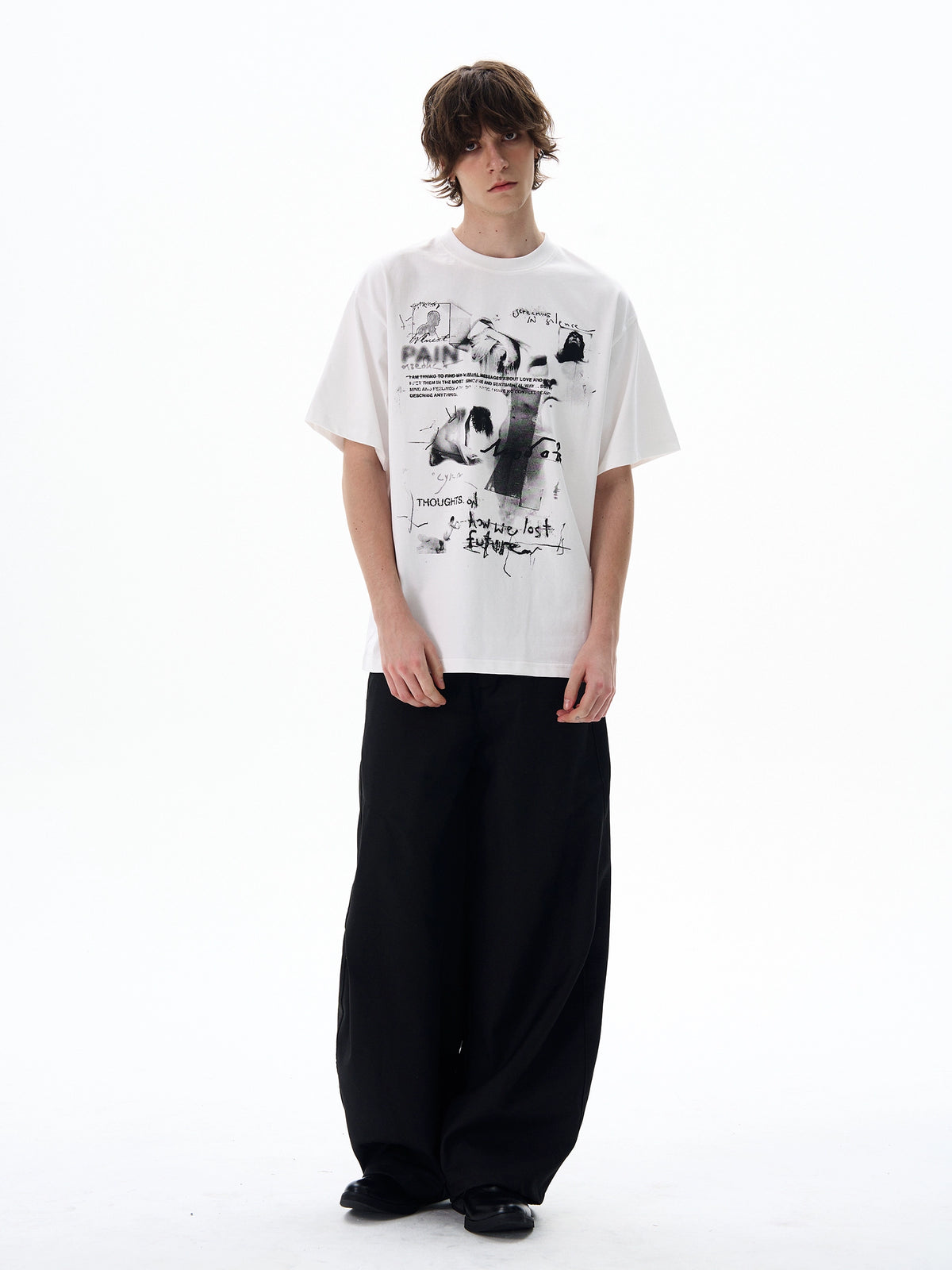 Retro Grafik Bol Kesim Kısa Kol Tişört